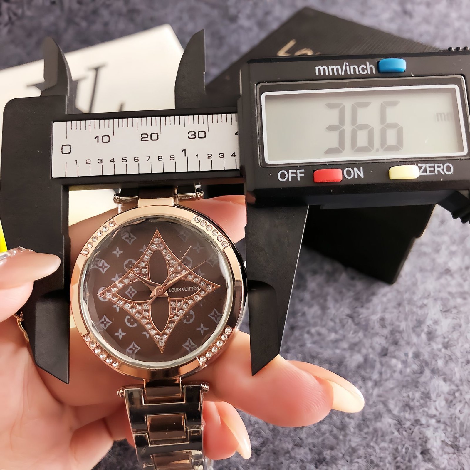 Louis Vuitton 9666 series watches embody the brand’s legendary luxury, featuring the iconic LV monogram motif on the dials, sleek metal bracelets, and refined tones like two-tone, silver, gold, and rose gold. With Louis Vuitton’s signature attention to detail and heritage of opulent design, these timepieces exude timeless sophistication. Perfect for fashion connoisseurs seeking a blend of iconic style and everyday elegance, they make a glamorous statement suitable for any occasion, from high-end events to chic daily looks.