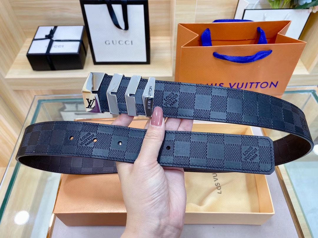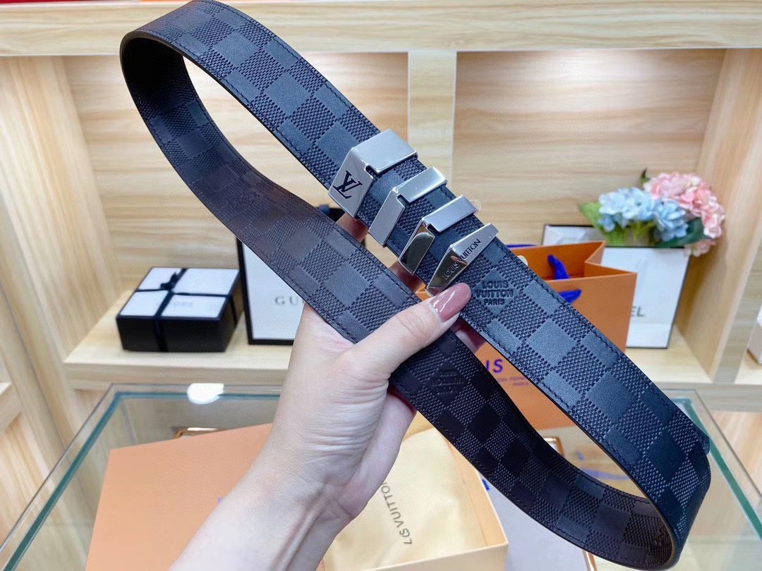 Home Belt LV belt Louis Vuitton black plaid belt, simple and elegant, refined and elegant