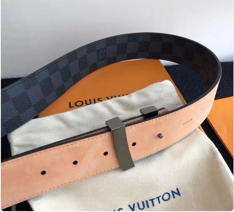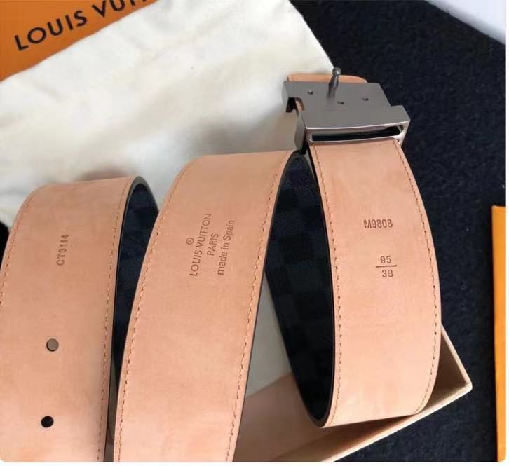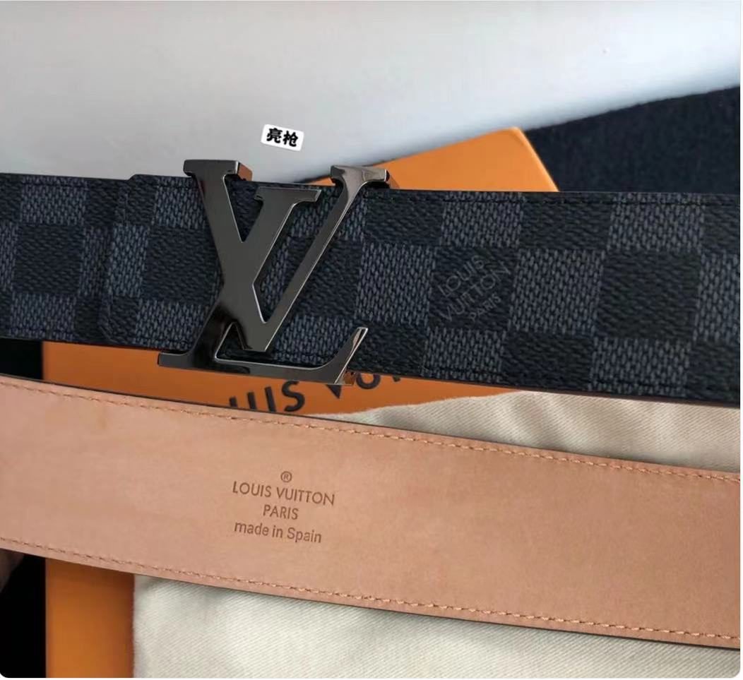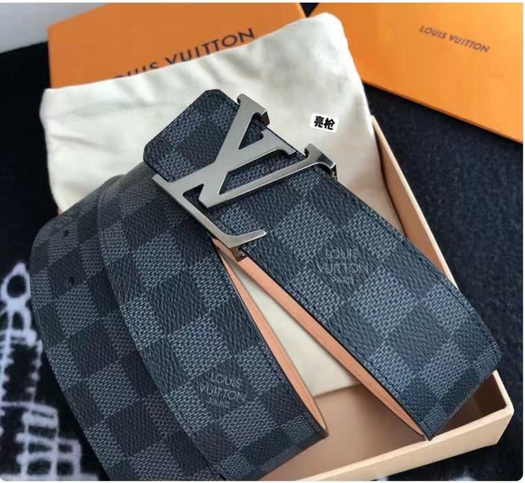 This Louis Vuitton black V-buckle black checkered belt combines classic and fashionable design elements, showing unique taste and charm. The belt is made of high-quality leather, which has a delicate feel, tough texture, wear resistance and durability. The V-shaped metal buckle on the belt is made with exquisite craftsmanship and has a bright luster, highlighting its noble quality.