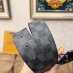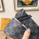 This Louis Vuitton black V-buckle black plaid belt highlights the brand’s nobility and elegance with its unique design and exquisite craftsmanship. The belt is made of high-quality leather, which is soft to the touch and durable, ensuring comfort and durability. The unique gray plaid pattern design and black LV logo buckle highlight the brand’s unique charm and fashion sense.