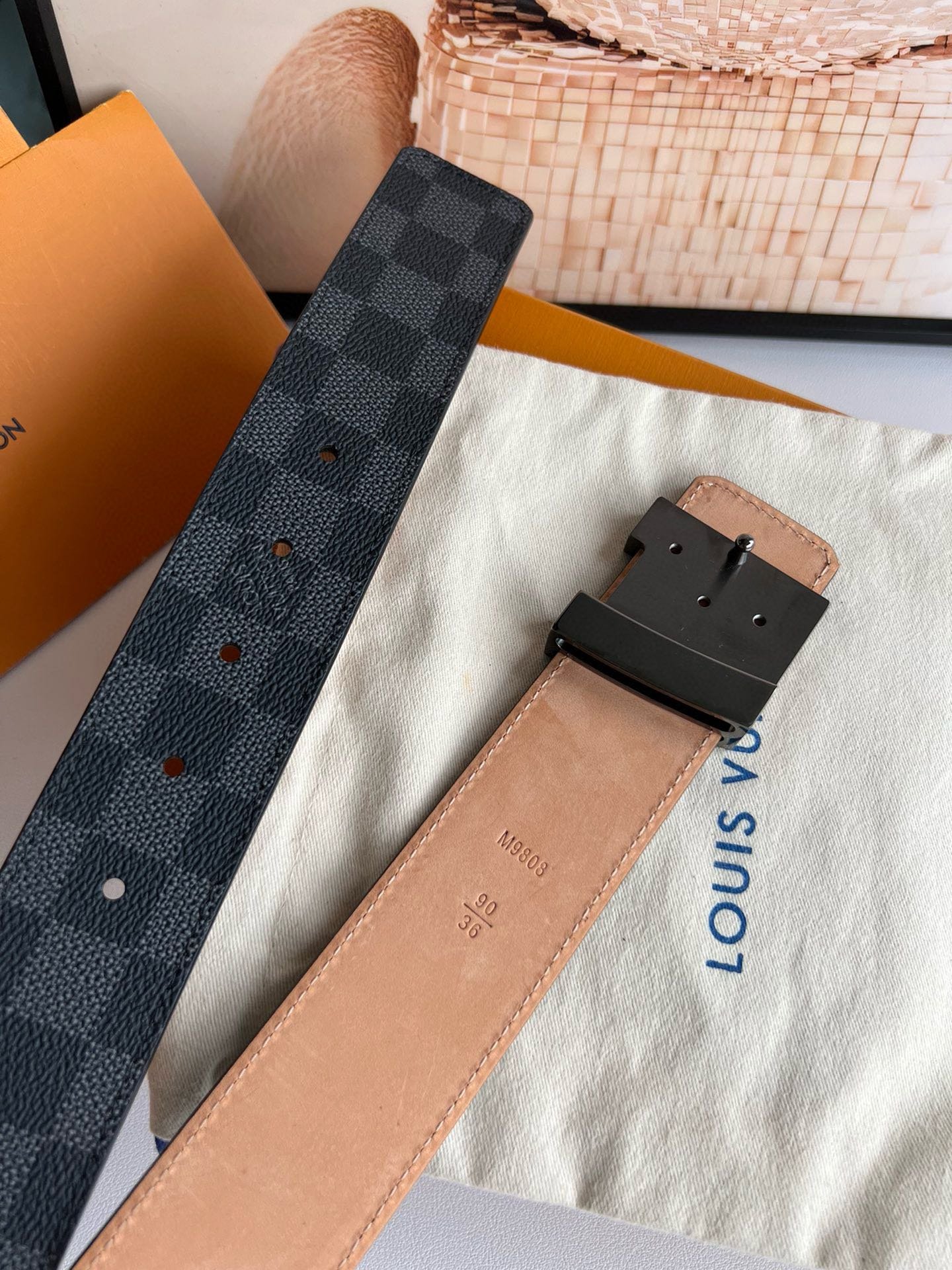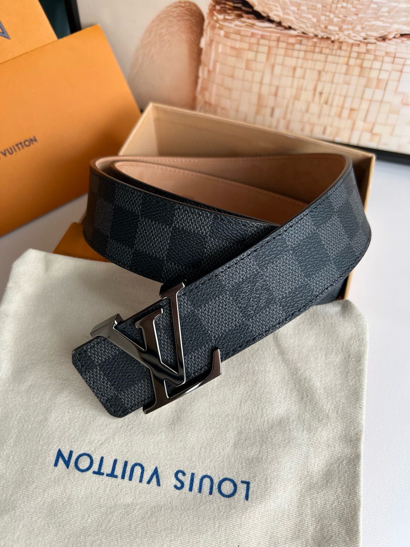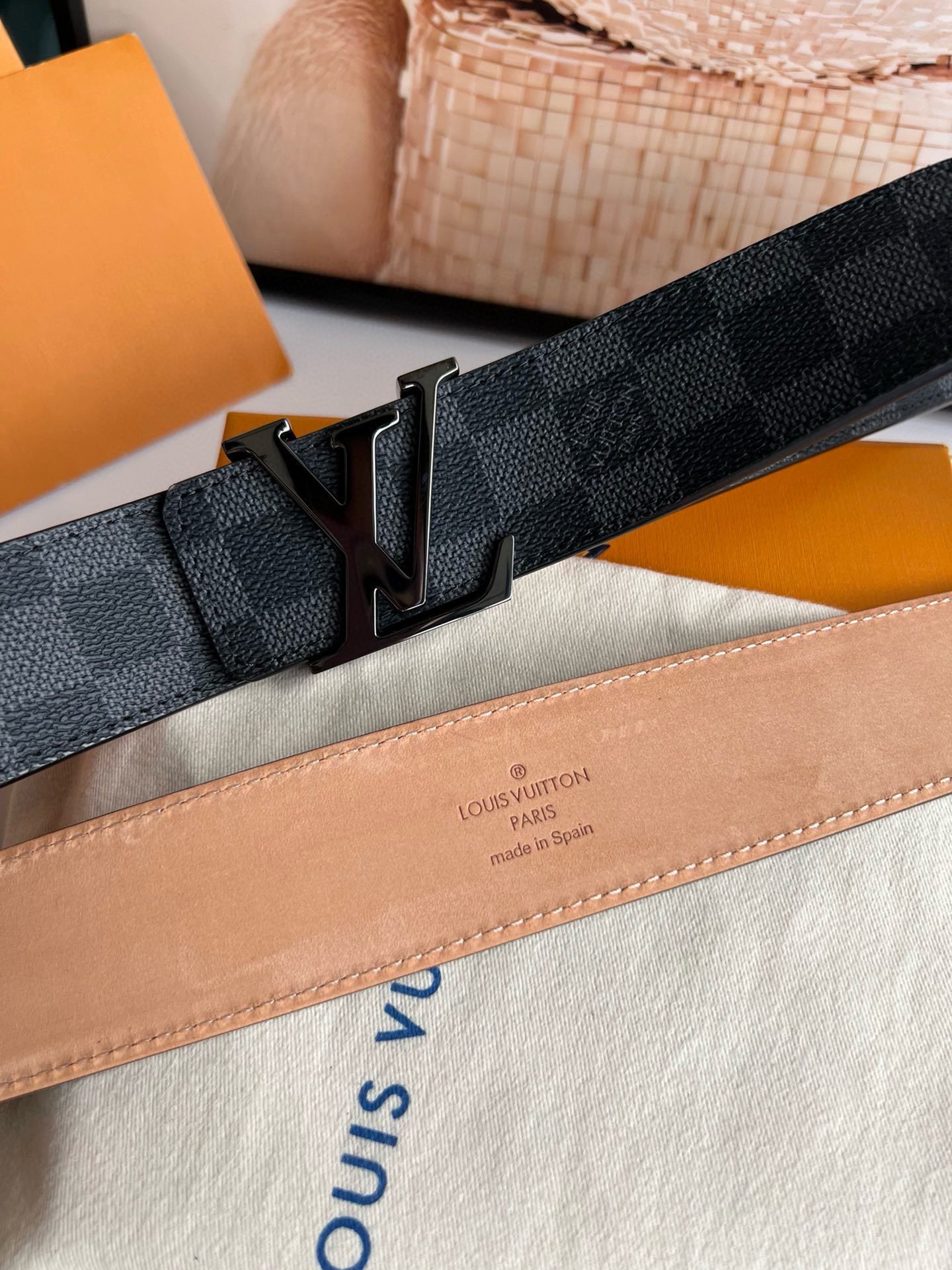 Home Belt LV belt Louis Vuitton black V buckle black plaid belt, simple and fashionable, low-key luxury