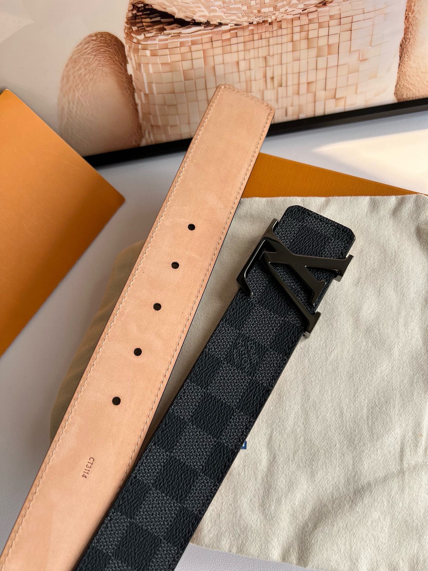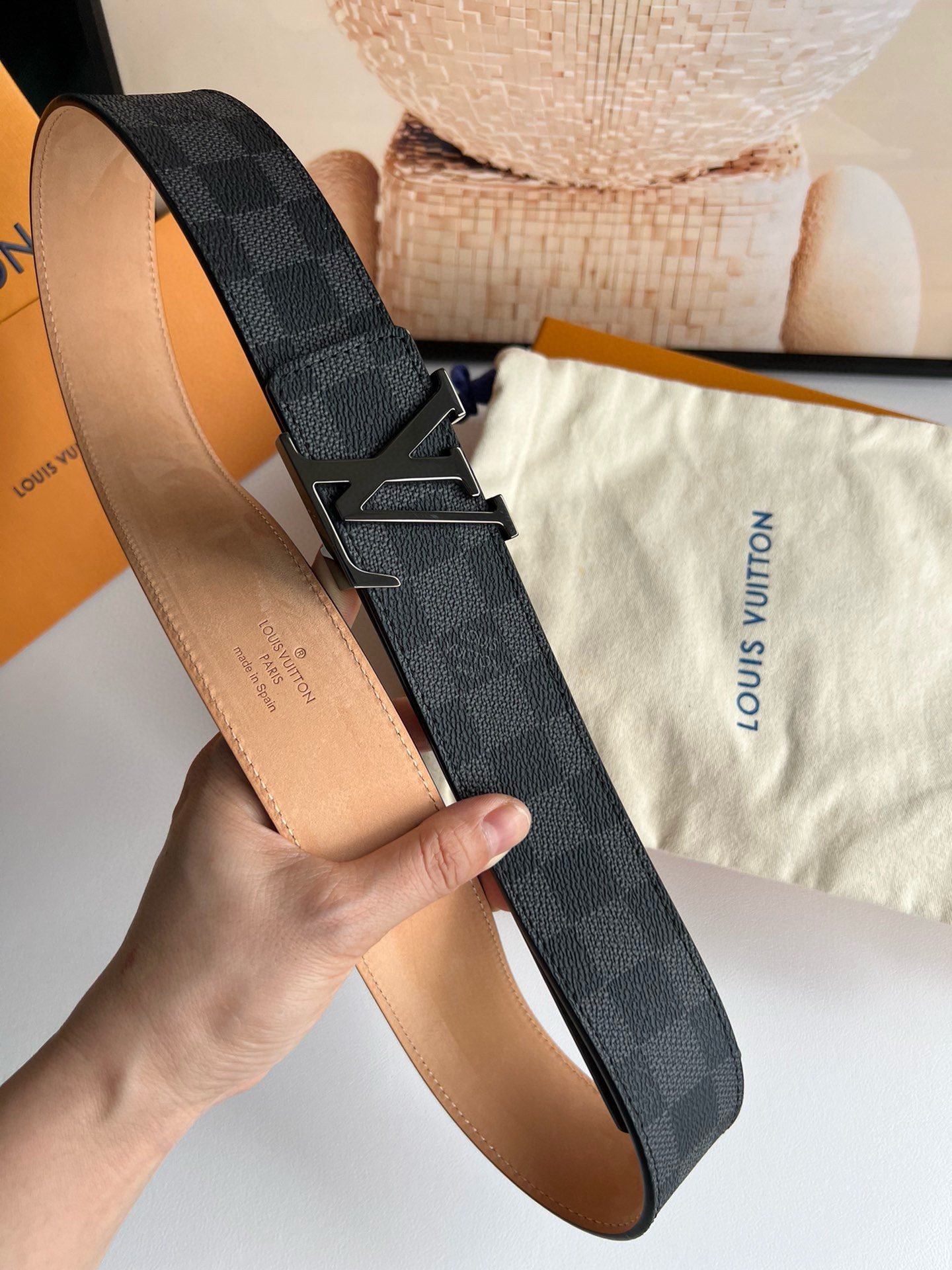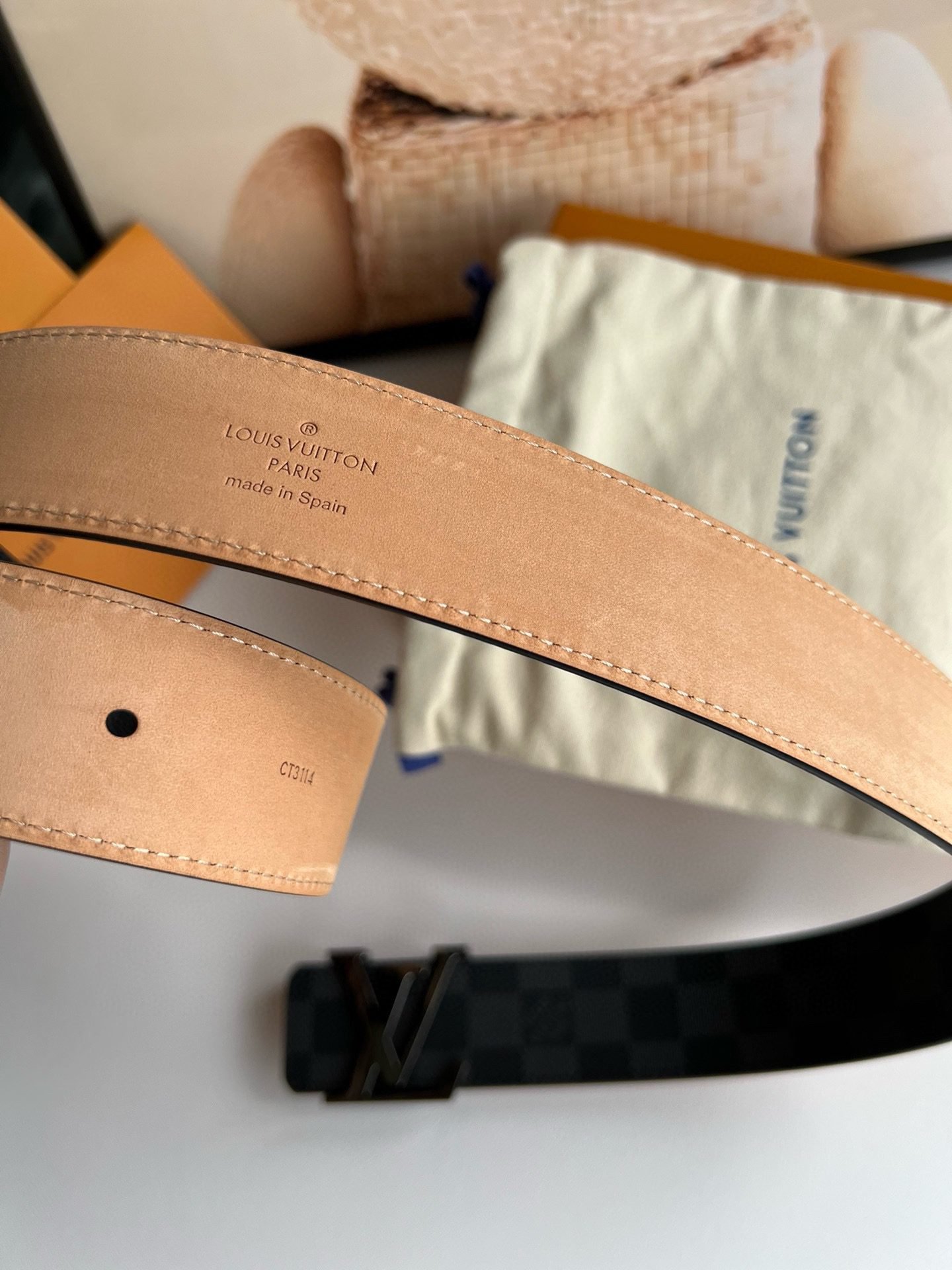 Home Belt LV belt Louis Vuitton black V buckle black plaid belt, simple and fashionable, low-key luxury