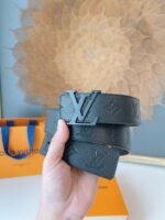 Louis Vuitton’s black V-buckle black textured belt shows the brand’s unique charm with its simple yet noble design style. Selected high-quality leather and treated with exquisite craftsmanship, the surface of the belt presents a delicate luster and soft touch, making people unable to put it down. The belt buckle uses the classic black LV logo, highlighting the brand’s classicness and luxury.