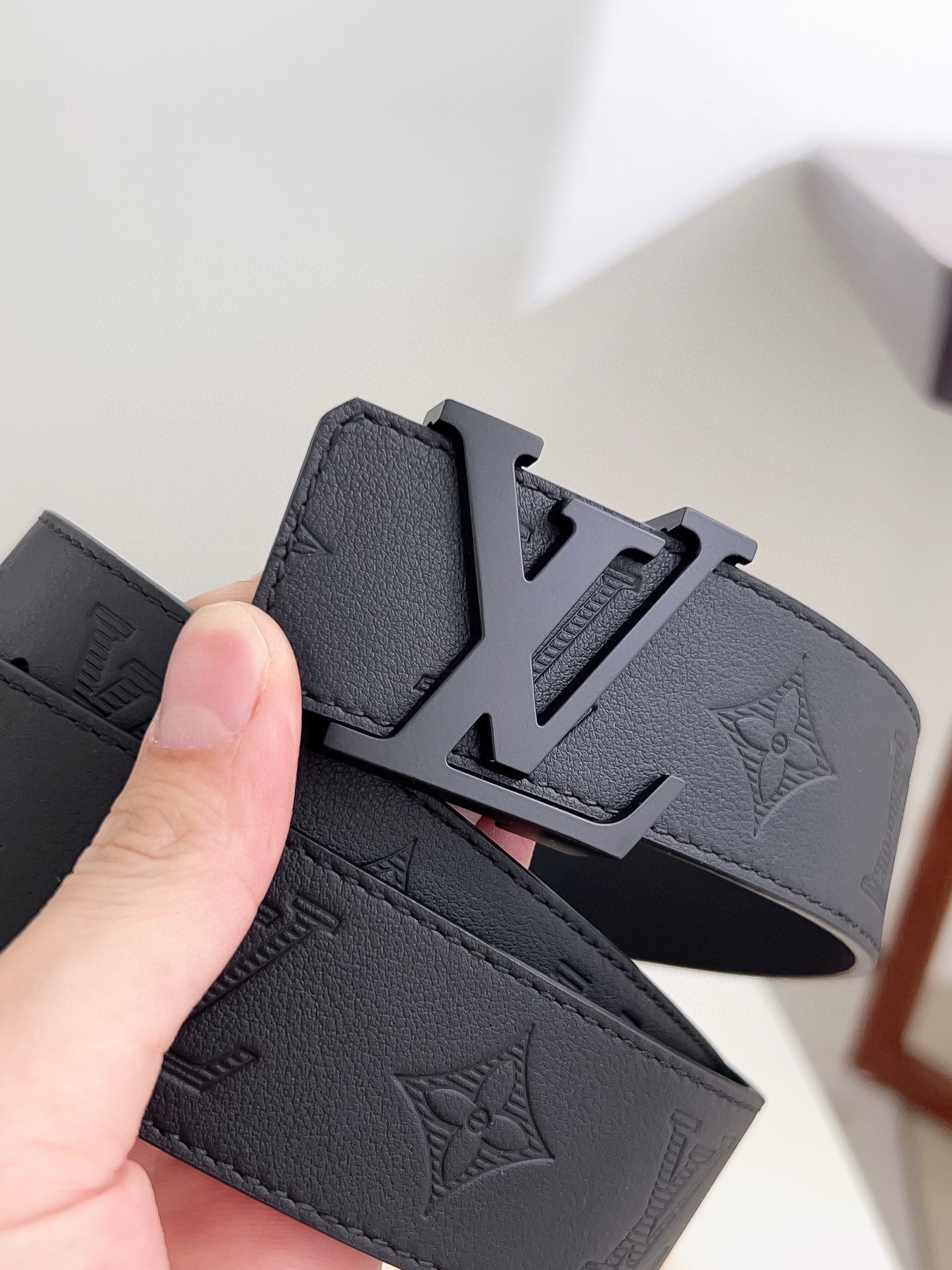 Louis Vuitton black V buckle black textured belt, simple and elegant, low-key luxury