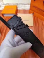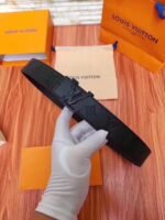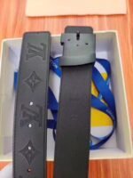 Louis Vuitton’s black V-buckle black textured belt interprets extraordinary taste with ultimate craftsmanship and material selection. It is made of top-grade leather and polished through multiple processes to give it a silky and tough texture. The surface of the belt is printed with the brand’s iconic LV letter pattern, and the metal buckle shines brightly, highlighting nobility and luxury.