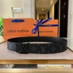 Louis Vuitton’s black V-buckle black textured belt is made of top-quality leather and crafted with exquisite craftsmanship to present an unparalleled texture and touch. The belt design is simple and elegant, and the black tone is classic and versatile. Whether it is paired with a formal suit or casual trousers, it can show a man’s stability and charm. The unique LV logo shines on the belt buckle, highlighting the brand’s nobility and luxury.