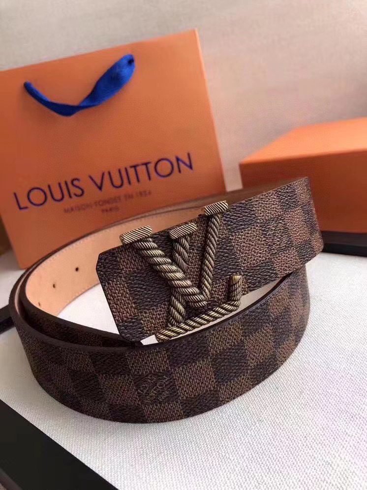 This Louis Vuitton braided V-shaped buckle brown checkered belt demonstrates unparalleled nobility and taste with its excellent craftsmanship and unique design. Made of fine brown leather material, it feels soft and delicate, and the carefully polished texture shows a low-key and luxurious texture. The belt buckle head adopts a unique LV logo design and is matched with exquisite metal fasteners. It is shiny and fully demonstrates the brand’s charm. none