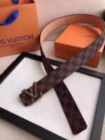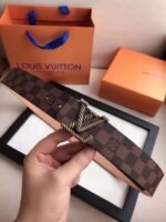 This Louis Vuitton braided V-shaped buckle brown checkered belt demonstrates unparalleled nobility and taste with its excellent craftsmanship and unique design. Made of fine brown leather material, it feels soft and delicate, and the carefully polished texture shows a low-key and luxurious texture. The belt buckle head adopts a unique LV logo design and is matched with exquisite metal fasteners. It is shiny and fully demonstrates the brand’s charm. none