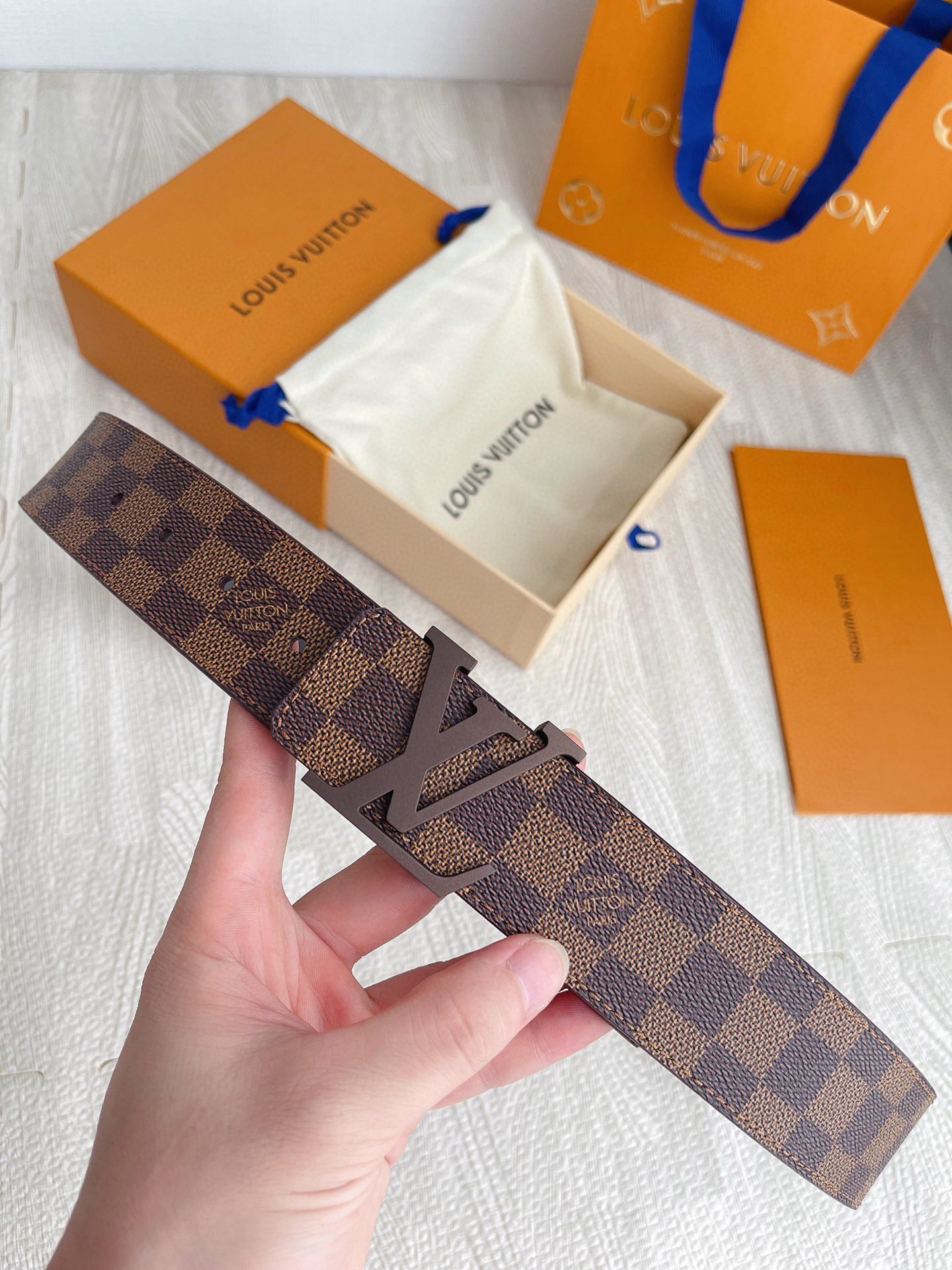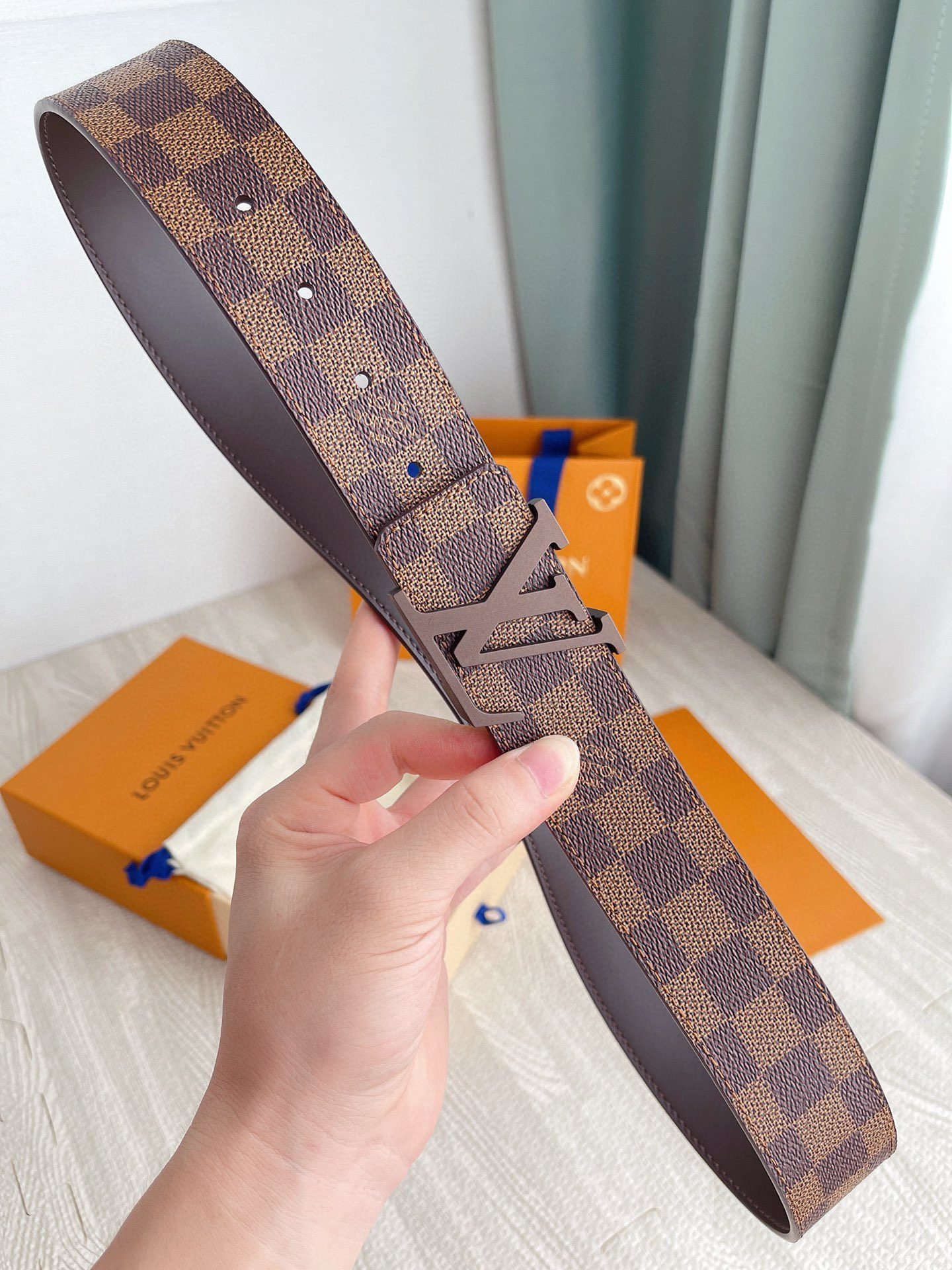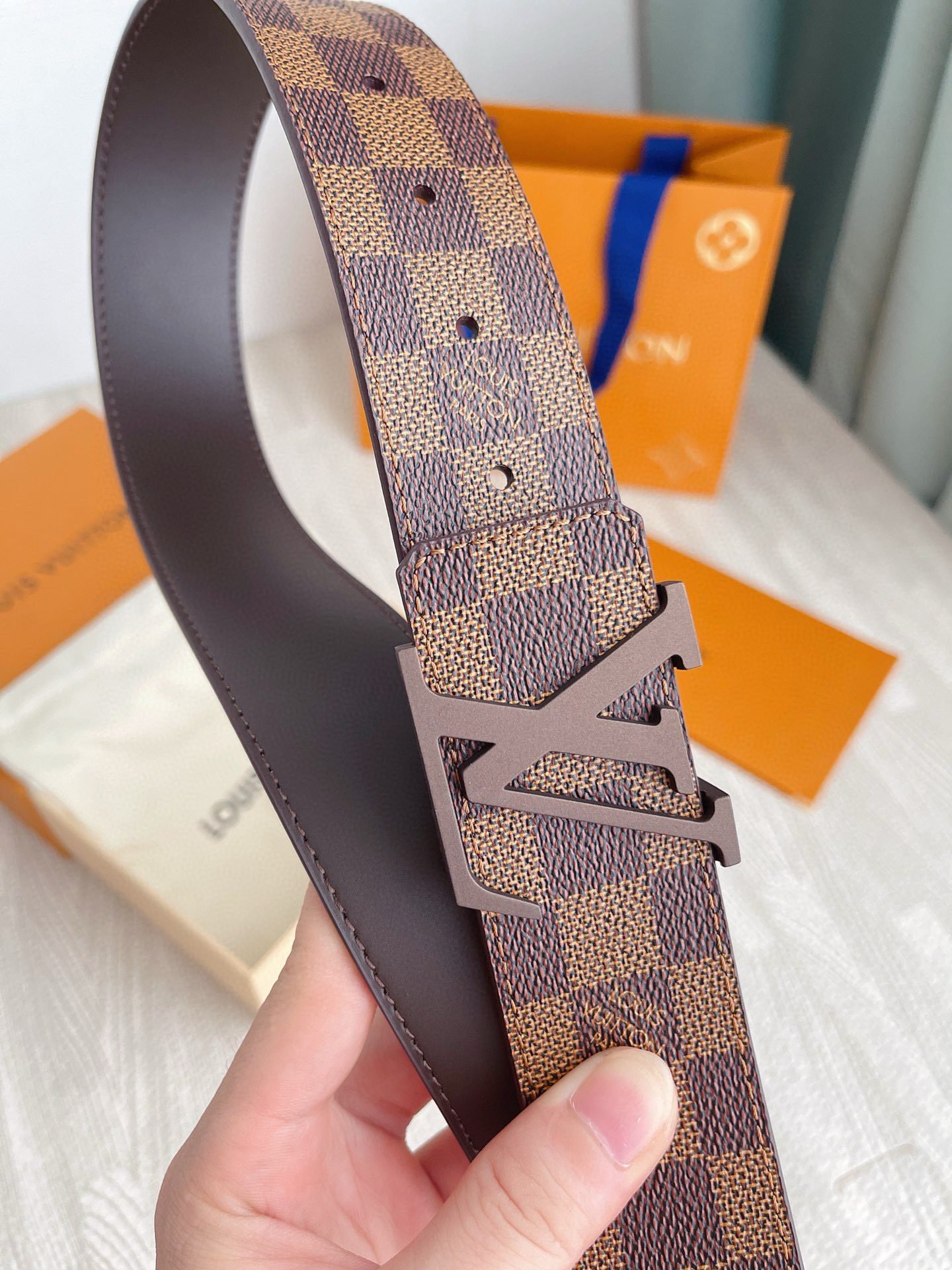 This Louis Vuitton brown V-buckle brown checkered belt has become a shining star in the fashion world with its unique charm and excellent quality. The belt is made of selected first-layer cowhide, which has been carefully polished and polished through multiple processes, giving it a unique brown luster, soft and delicate touch, and excellent durability. The “V” shaped logo on the belt uses exquisite metal craftsmanship, shining with a low-key and luxurious light, highlighting the noble temperament of the brand.