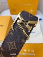 This Louis Vuitton classic brown men’s belt, with its unique brown tone and exquisite craftsmanship, has become a shining star among men’s fashion accessories. Selected high-quality leather material, polished with exquisite craftsmanship, showing unique texture and luster. The belt buckle is designed in gold and is inlaid with the brand’s iconic “LV” pattern, highlighting its low-key luxury taste.