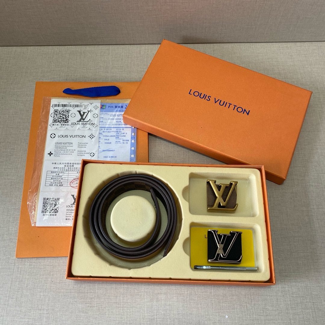 Louis Vuitton’s classic double-button V-buckle belt gift box set uses the brand’s consistent exquisite craftsmanship and excellent quality to create a unique fashion accessory. The gift box contains a selected black belt with two V-shaped fasteners, gold and black, showing the brand’s ultimate pursuit of details. The belt is made of top-grade leather material, which is soft and delicate to the touch, wear-resistant and durable, and is fashionable and practical at the same time.