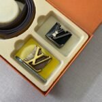 Louis Vuitton’s classic double-button V-buckle belt gift box set uses the brand’s consistent exquisite craftsmanship and excellent quality to create a unique fashion accessory. The gift box contains a selected black belt with two V-shaped fasteners, gold and black, showing the brand’s ultimate pursuit of details. The belt is made of top-grade leather material, which is soft and delicate to the touch, wear-resistant and durable, and is fashionable and practical at the same time.