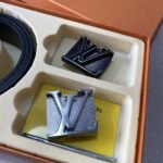 Louis Vuitton’s classic V-buckle belt gift box set uses the brand’s consistent exquisite craftsmanship and excellent quality to create a unique fashion accessory. The gift box contains a selected black belt with two V-shaped fasteners, black and silver, showing the brand’s ultimate pursuit of details. The belt is made of top-grade leather material, which is soft and delicate to the touch, wear-resistant and durable, and is fashionable and practical at the same time.
