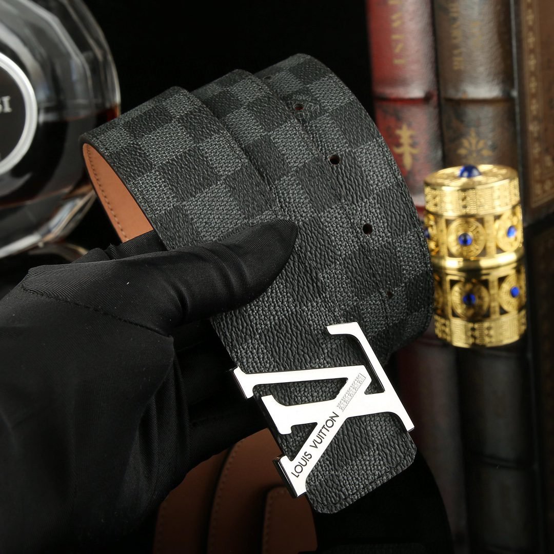 Home Belt LV belt Louis Vuitton classic V-buckle black belt, simple and elegant, low-key luxury