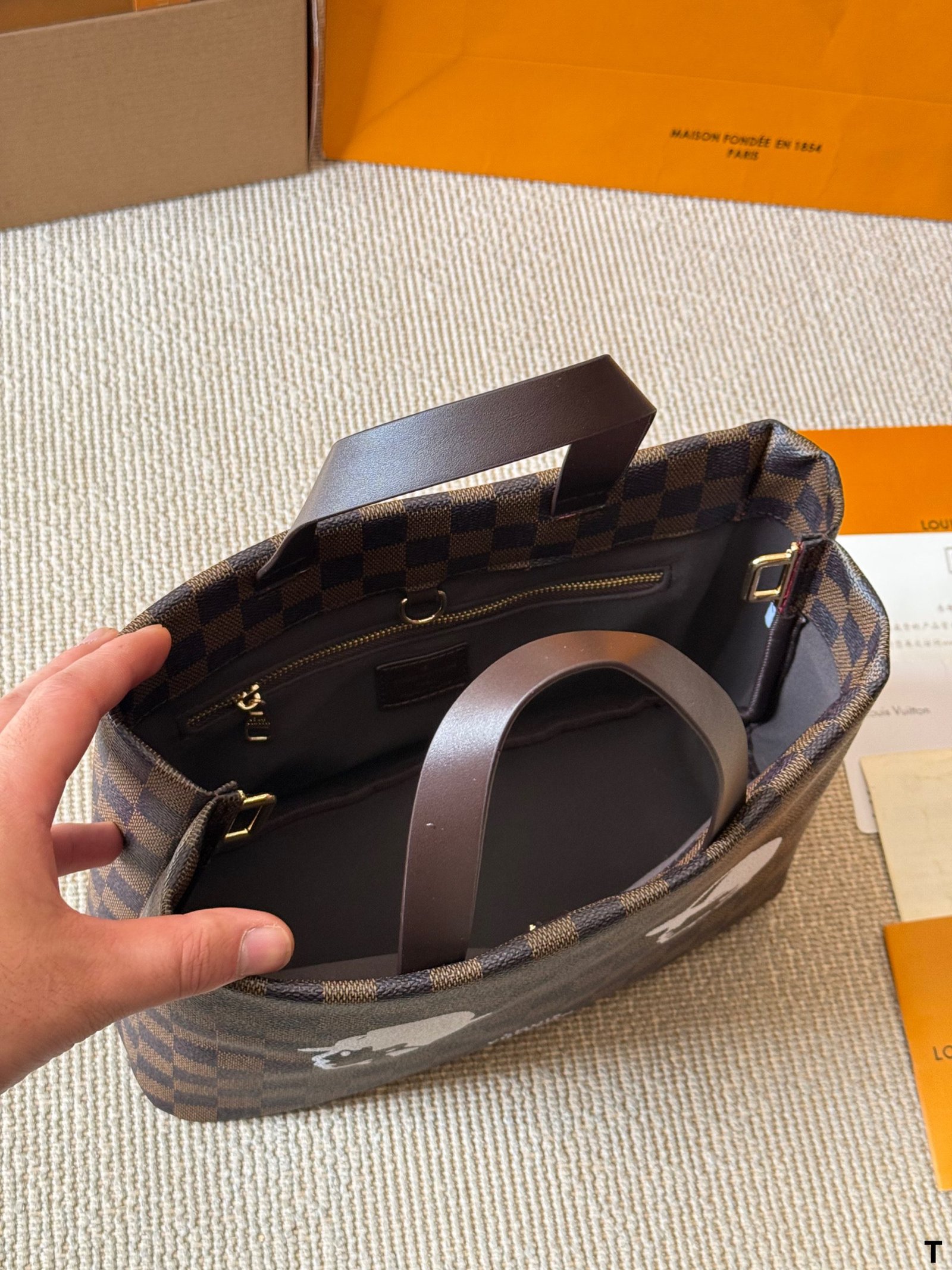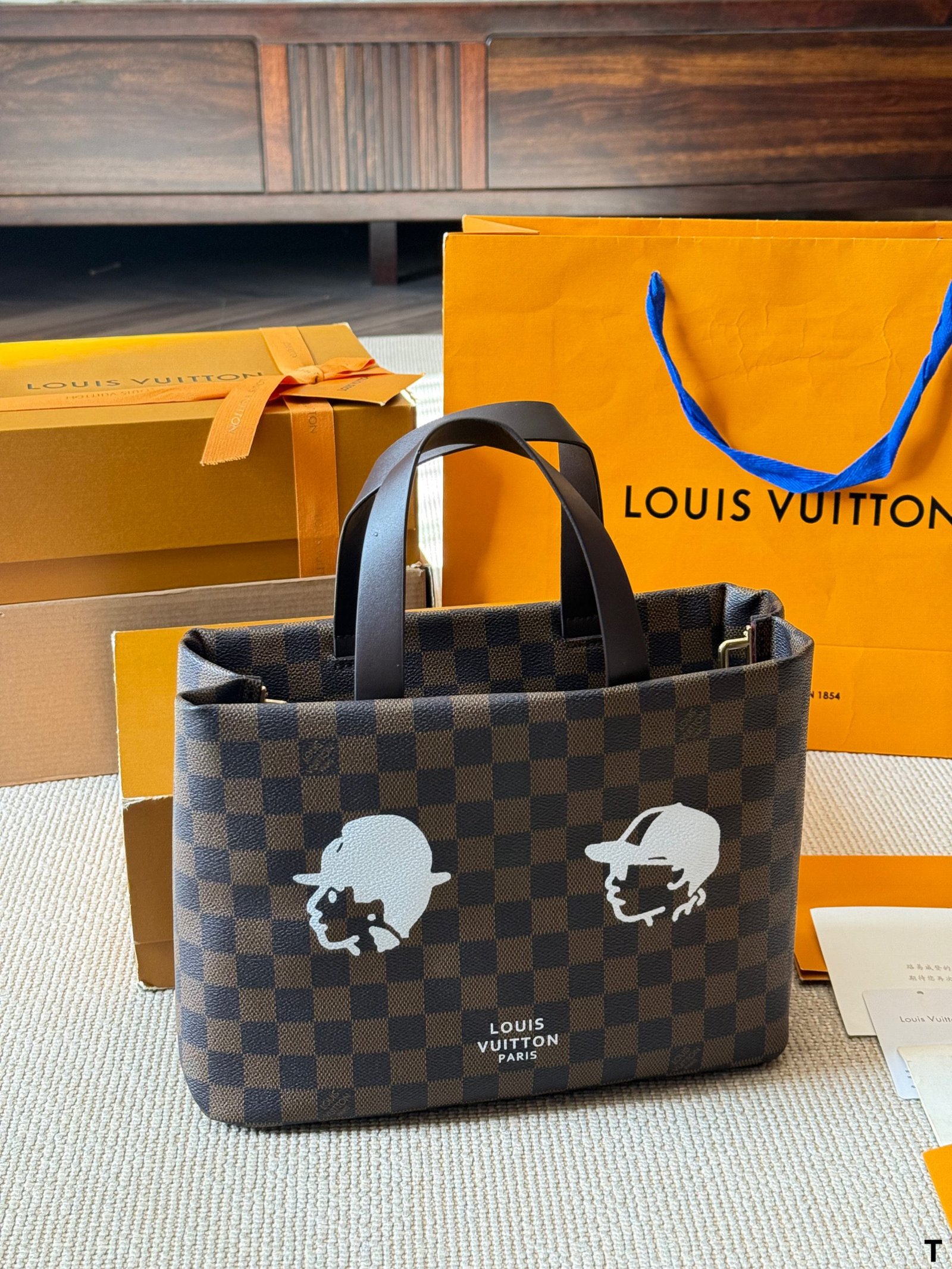 This Louis Vuitton tote bag blends heritage and artistry, featuring the brand’s iconic Damier Graphite checkered pattern, distinctive graphic silhouettes, and premium leather craftsmanship. With Louis Vuitton’s legacy of innovative design and cultural fusion, this bag seamlessly merges classic luxury with contemporary artistic flair. Perfect for those who appreciate a mix of iconic branding and bold creativity, it makes a standout statement suitable for both everyday use and fashion-forward gatherings.