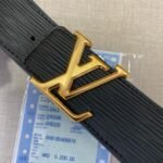 This Louis Vuitton black belt with gold V-shaped buckle has become a classic in the fashion industry with its simple yet elegant design. Selected high-quality black leather, soft and delicate to the touch, deep in color, showing noble temperament. The unique V-shaped buckle design is inlaid with Louis Vuitton’s iconic golden LOGO, which is not only sturdy and durable, but also highlights the nobility and luxury of the brand.