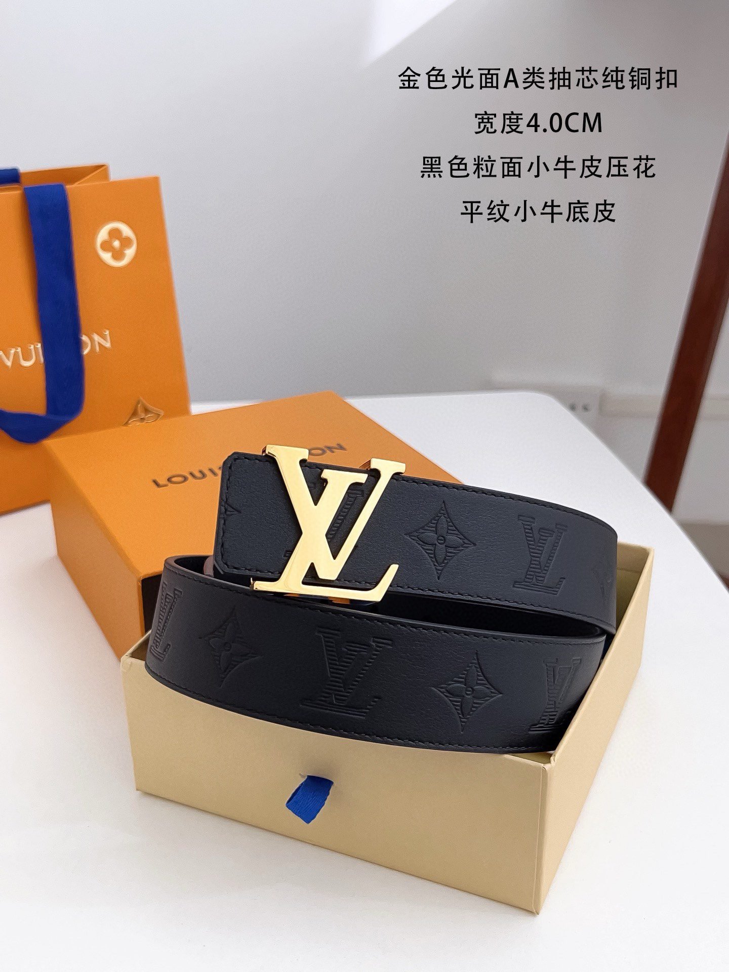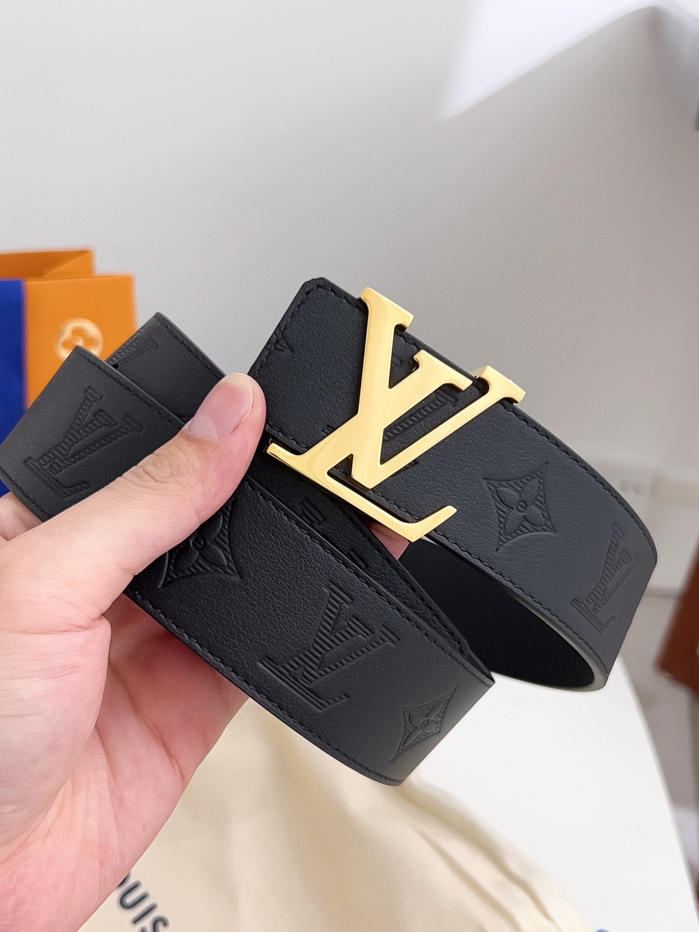 Home Belt LV belt Louis Vuitton gold V buckle black textured belt, simple and classic, low-key luxury
