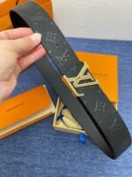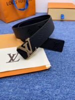 Louis Vuitton’s classic black leather men’s belt is made of top-grade leather material, with a soft and delicate touch, deep and shiny color. The gold buckle on the belt is exquisitely designed and engraved with the brand’s iconic “LV” letter pattern, showing its unparalleled noble temperament.