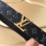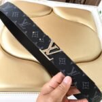 Louis Vuitton’s gold V-buckle black textured belt perfectly combines classic and fashion. The belt is made of fine leather, which is soft and comfortable to the touch and has a delicate texture, showing an unparalleled sense of luxury. The unique golden “LV” belt buckle is exquisite and elegant, highlighting the unique charm of the brand.