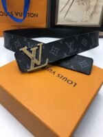 This Louis Vuitton gold V buckle black textured belt has become a shining star in the fashion industry with its unique charm and excellent quality. Made of top-grade cowhide material and crafted with exquisite craftsmanship, the surface of the belt presents a delicate and textured texture, which is soft to the touch and durable. The golden button head is inlaid with the brand’s iconic “LV” pattern, highlighting the brand’s nobility and extraordinaryness. The design of the belt is simple and classic, perfectly interpreting the perfect combination of fashion and taste.