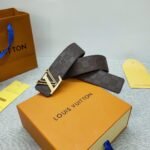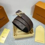 Louis Vuitton’s golden V brown plaid belt is made of selected high-quality cowhide as its raw material. It has been carefully polished through multiple processes to present a unique texture and luster. The belt buckle head is made of gold metal and matched with the classic “LV” logo, showing a low-key luxury taste. The belt has a moderate width and smooth lines, making it comfortable to wear without losing its atmosphere.
