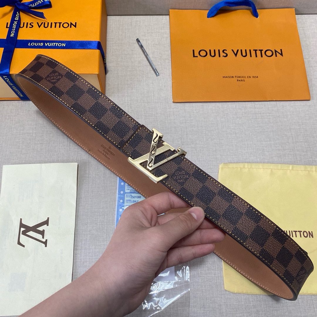 This Louis Vuitton V-buckle brown plaid belt shows its extraordinary taste and charm with its unique brand logo and exquisite craftsmanship. It adopts a classic plaid pattern of brown and black and is paired with a gold buckle, showing a low-key and luxurious beauty. The belt is made of high-quality leather, which is soft and elastic to the touch, wear-resistant and durable, adding elegance and texture to your fashion style.