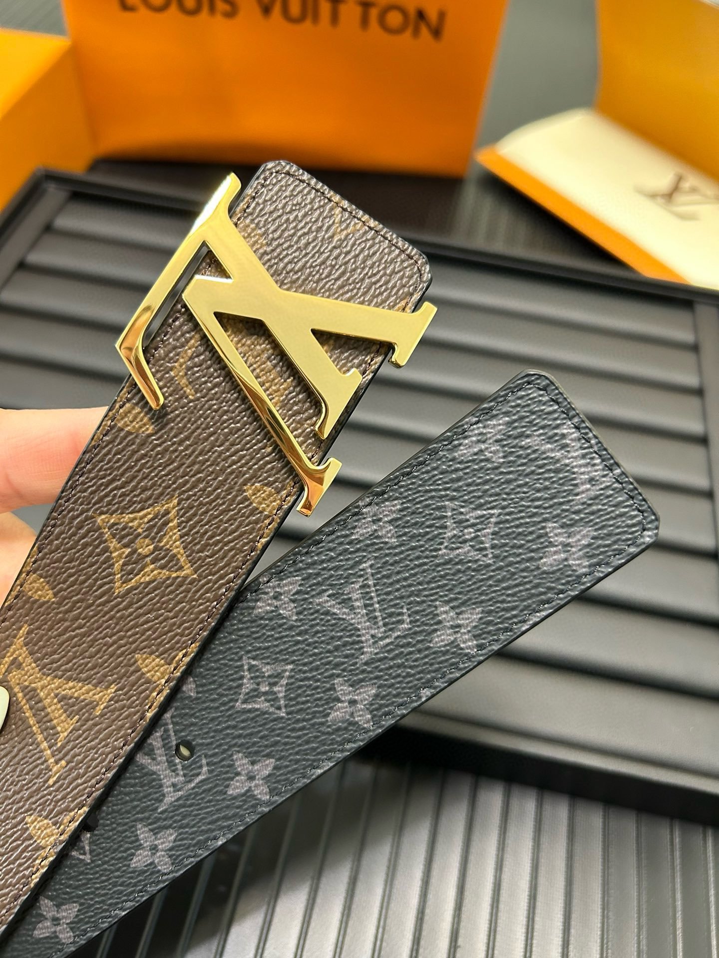 1.Classic design: Louis Vuitton’s brown classic belt shows the brand’s unique charm with its timeless design. The golden “LV” letter buckle is like a bright star, showing extraordinary quality and style.