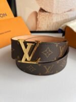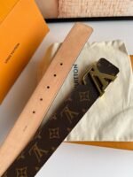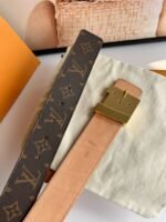 1.Unique design: This belt incorporates Louis Vuitton’s classic elements. The brown leather is inlaid with the iconic golden LV logo. It is simple yet luxurious, highlighting its unique taste.