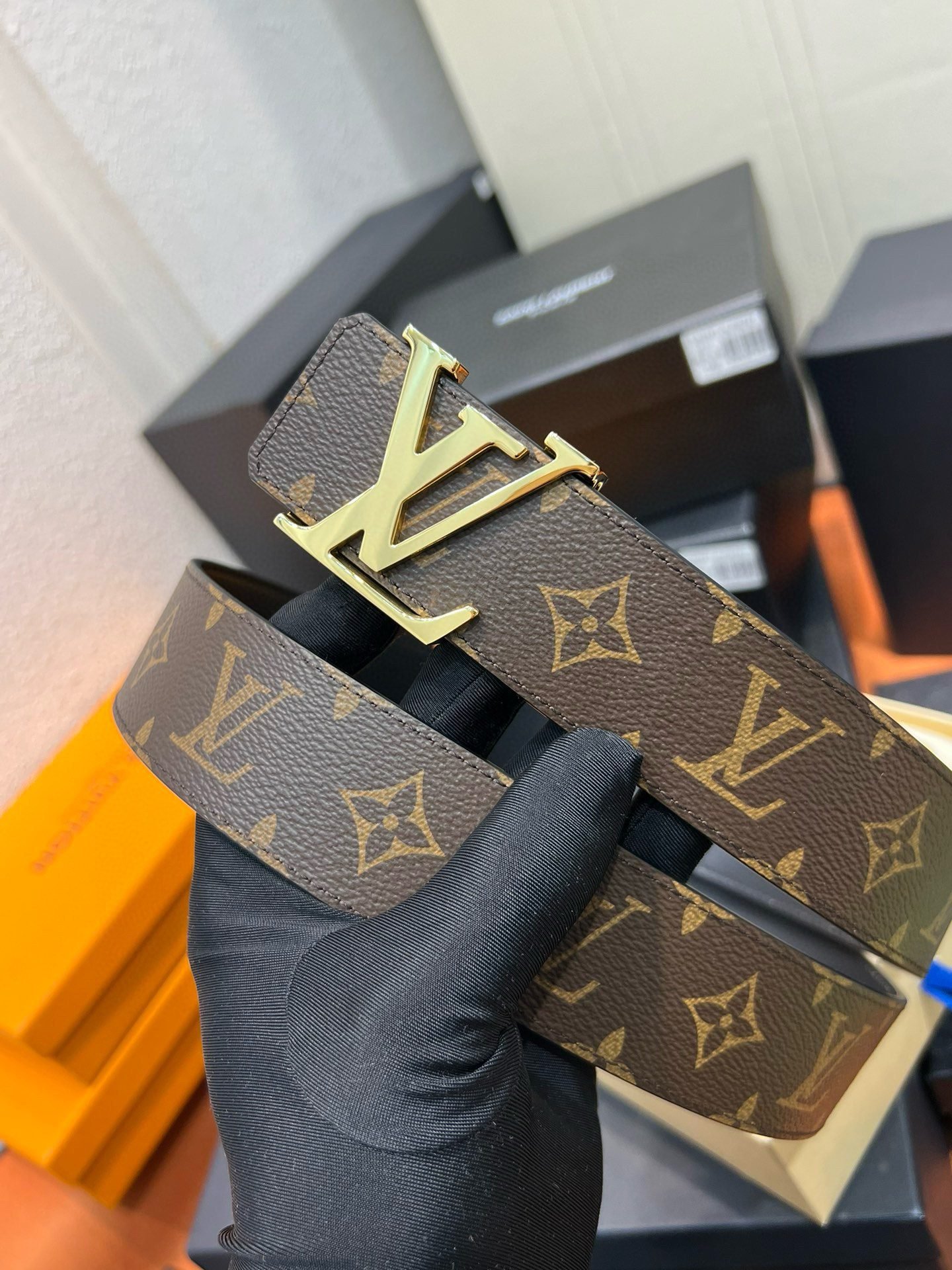 Louis Vuitton’s brown leather belt with golden LV buckle combines traditional craftsmanship with modern aesthetics, showing unparalleled luxury and elegance. The top-grade brown leather is selected, finely polished and specially treated, so that the surface of the belt presents a unique luster and delicate texture. The golden “LV” logo is inlaid on the belt buckle, shining with dignity and highlighting the noble temperament of the brand.