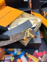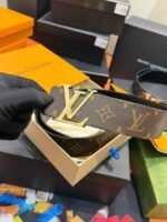 Louis Vuitton’s brown leather belt with golden LV buckle combines traditional craftsmanship with modern aesthetics, showing unparalleled luxury and elegance. The top-grade brown leather is selected, finely polished and specially treated, so that the surface of the belt presents a unique luster and delicate texture. The golden “LV” logo is inlaid on the belt buckle, shining with dignity and highlighting the noble temperament of the brand.