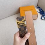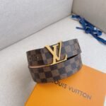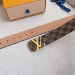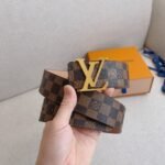 This Louis Vuitton gold V-buckle brown plaid belt shows the brand’s classics and eternity with its unique brown plaid design. The belt is made of fine leather, which feels soft and elastic while having excellent wear resistance and durability. The gold buckle is inlaid with the brand’s iconic “LV” letters, highlighting nobility and luxury.