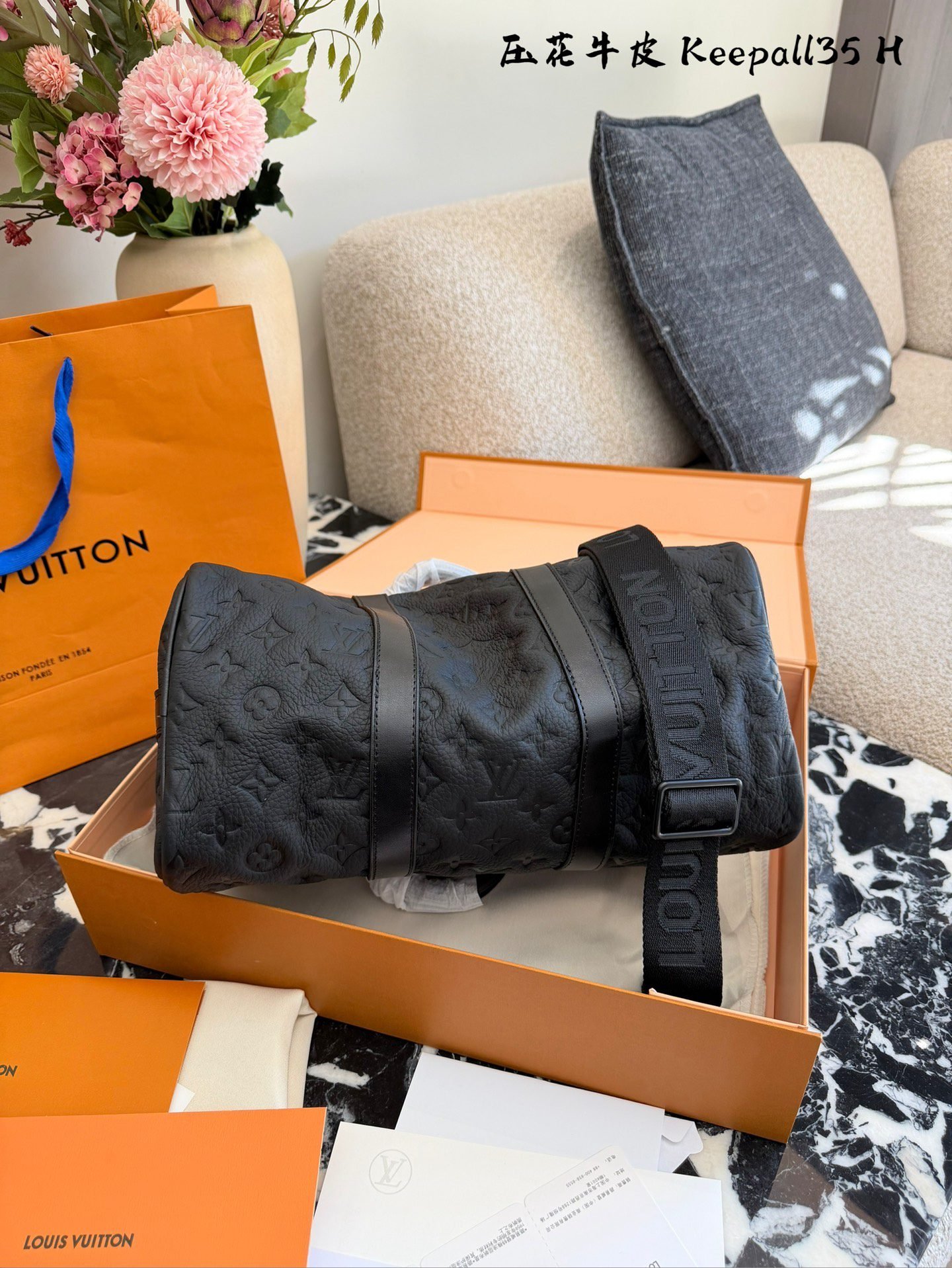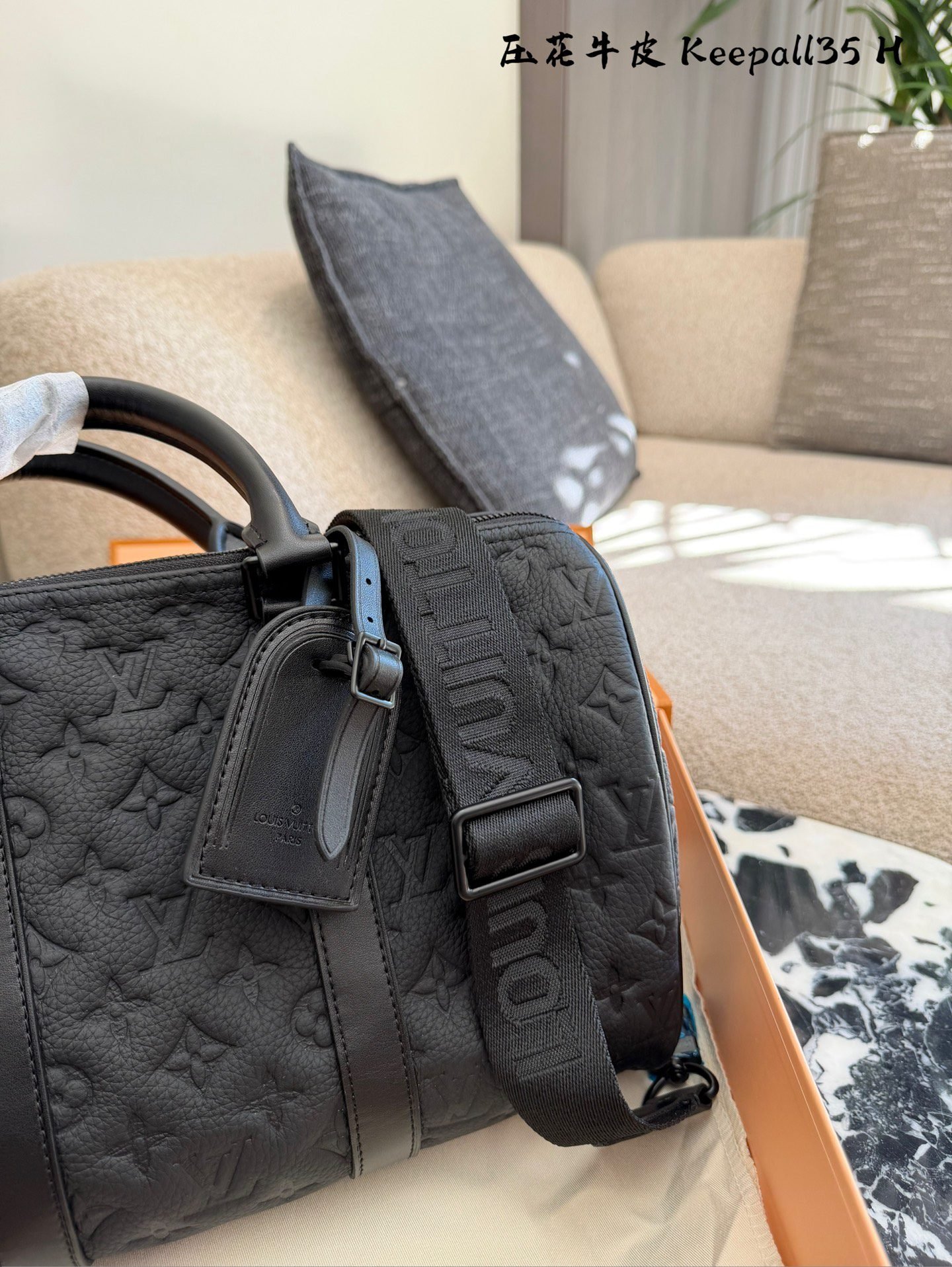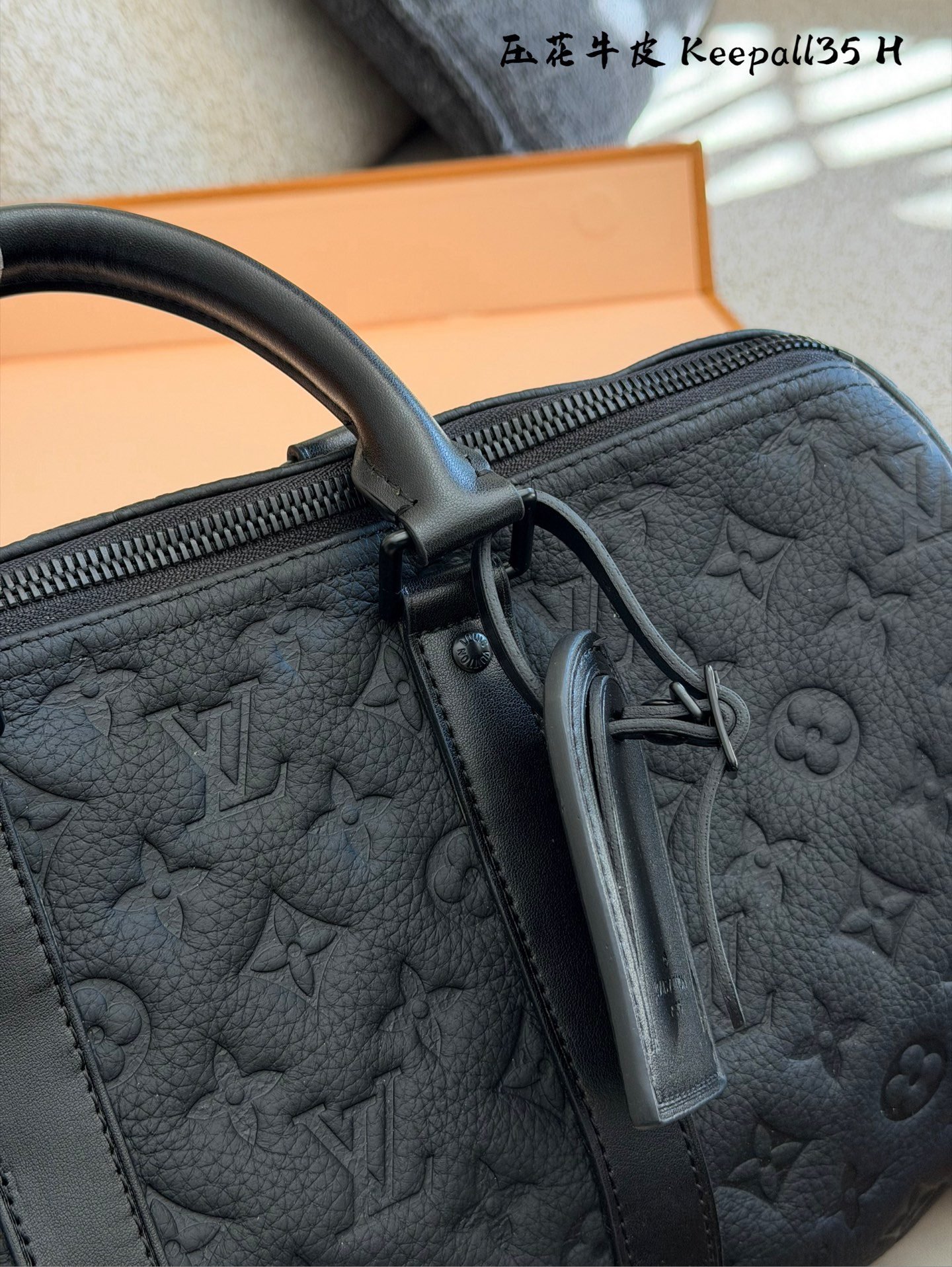 The Louis Vuitton Keepall 35 H bag embodies bold luxury, featuring embossed leather with the iconic monogram pattern, a sleek black finish, and versatile carry options. With Louis Vuitton’s legacy of exceptional craftsmanship and travel-inspired design, this bag seamlessly merges classic heritage with modern functionality. Perfect for those who appreciate a blend of iconic branding and practical elegance, it makes a statement suitable for both travel adventures and urban sophistication.