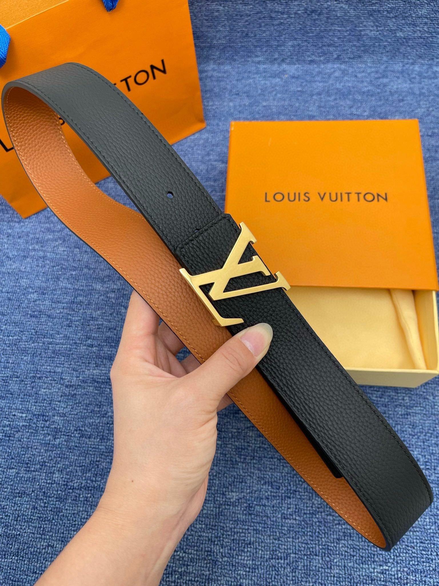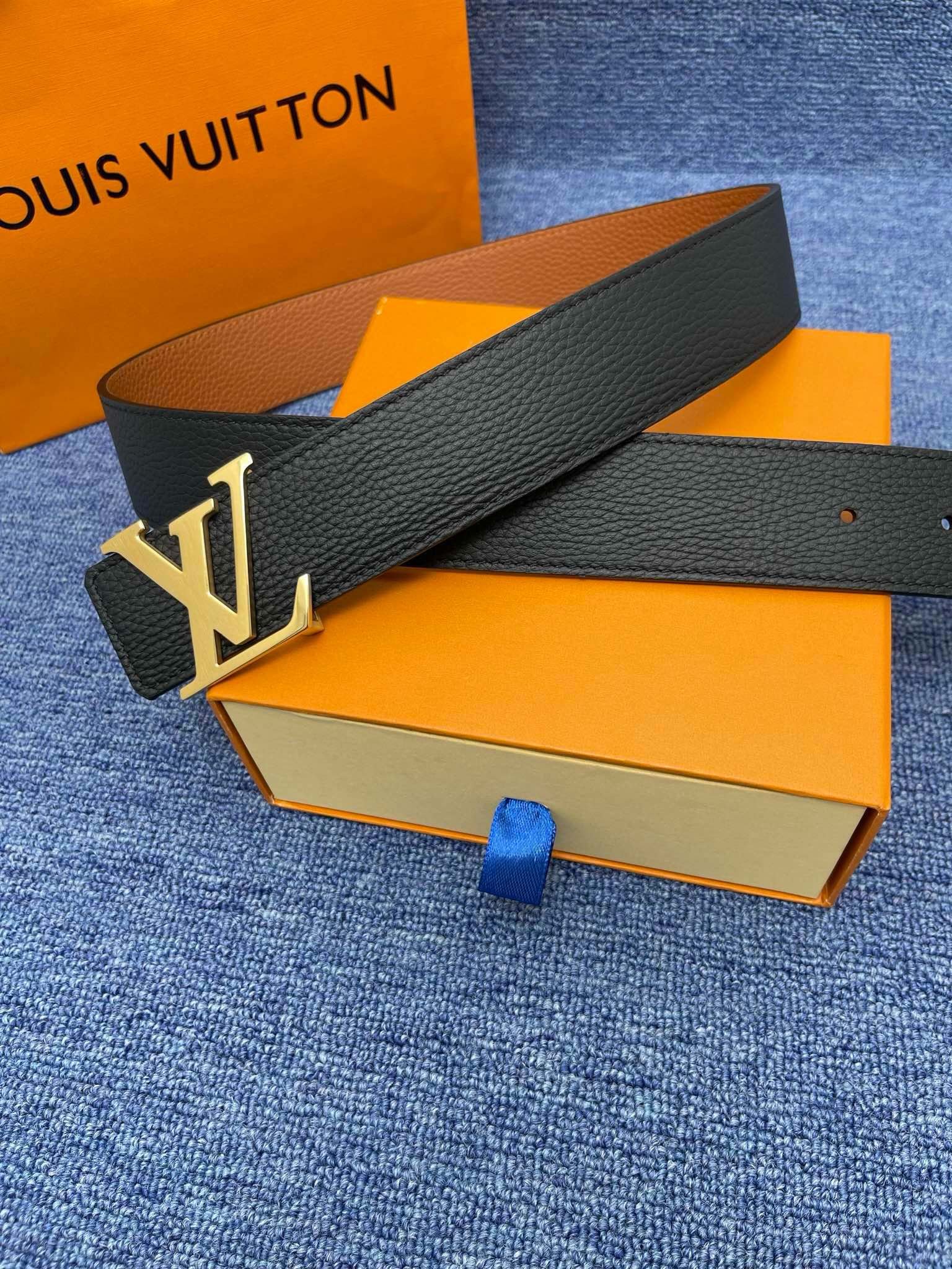 Home Belt LV belt Louis Vuitton luxury gold V-buckle black belt, fashionable, noble and elegant
