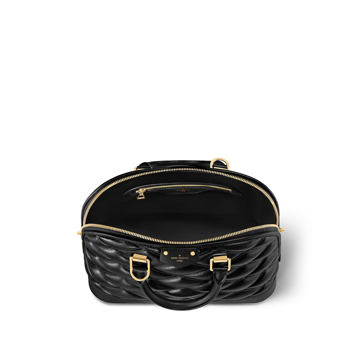 Made from lambskin featuring the House’s celebrated malletage crisscrossing pattern, the Alma PM is an elegant and practical handbag. Its signature shape is embellished with chic details like a gold-color padlock, leather key bell, and rolled-leather top handles. A removable and adjustable strap enables cross-body and shoulder wear.