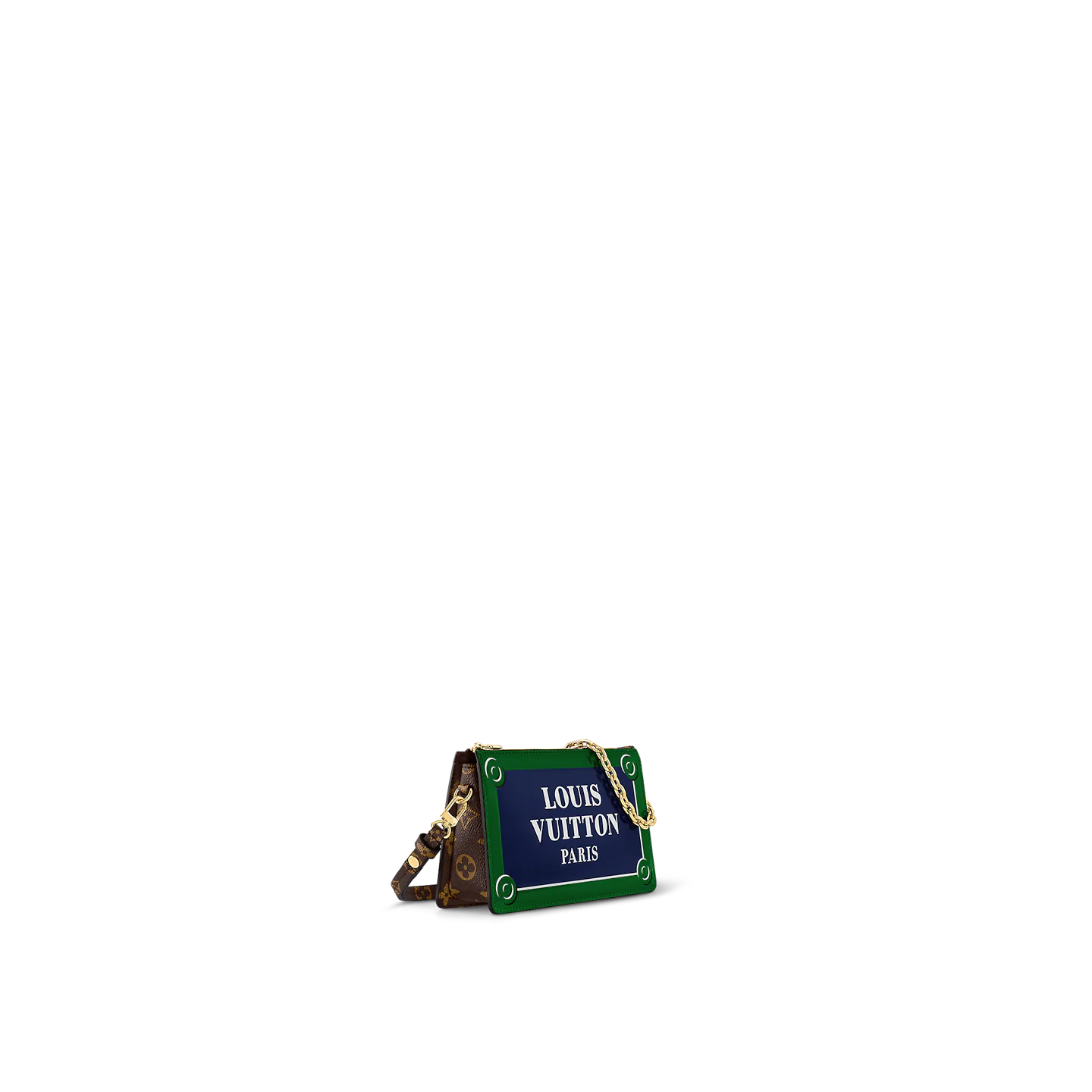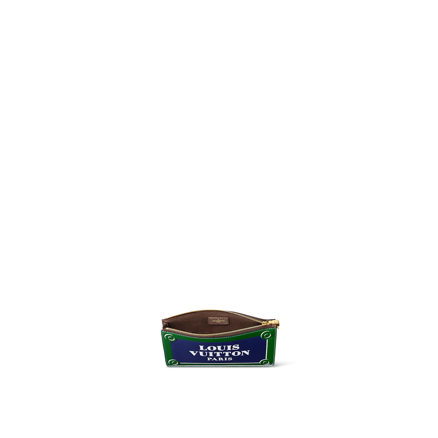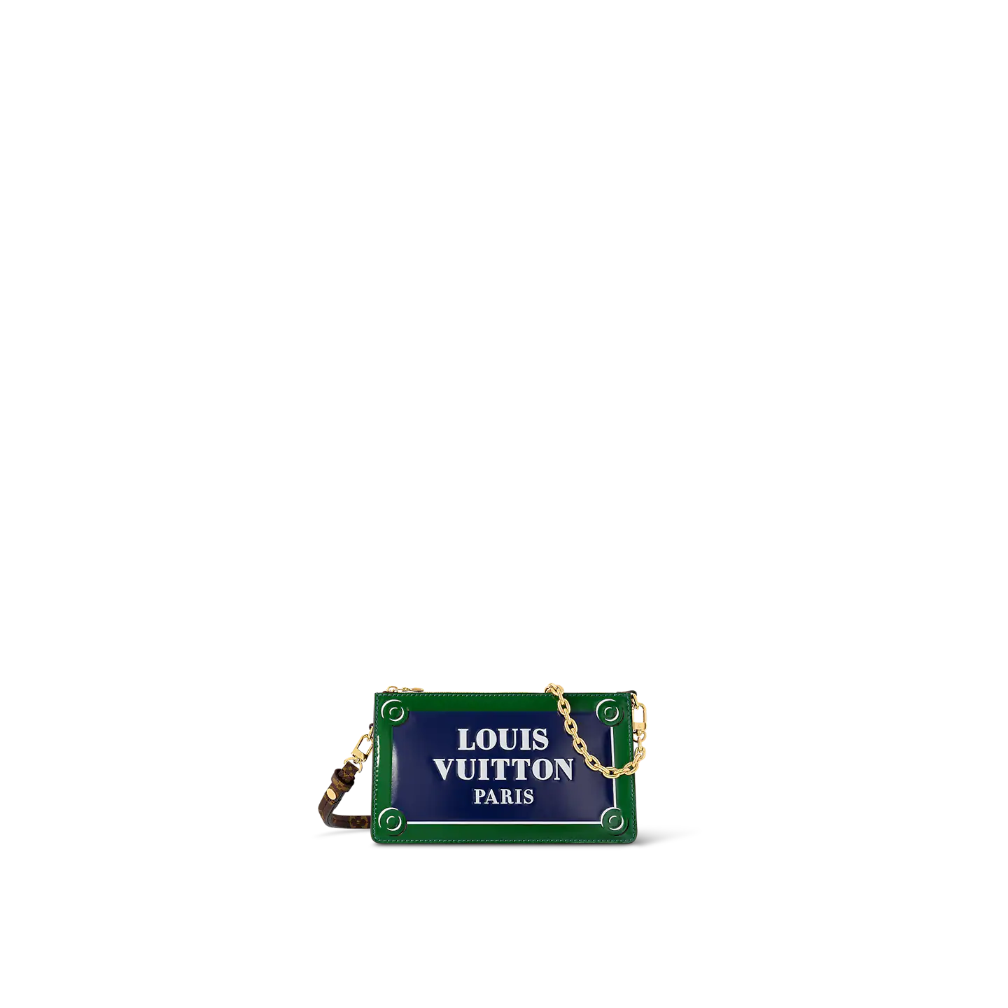 The Lexington Pouch is made from calf leather and features an all-over glossy print of a Parisian street-sign that says “Louis Vuitton Paris” in bold white letters. This zipped pouch offers a number of carry options thanks to a detachable chain and a removable, adjustable strap.