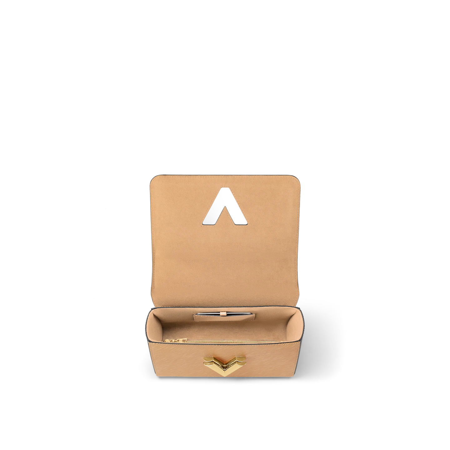 Crafted from the House’s emblematic Epi leather, the Twist MM chain bag features the now-iconic LV Twist lock, a sculptural signature in gleaming golden metal.This Twist MM handbag in Camel Epi leather edged with black is offered with a leather strap, for more carry options. For day, it can be worn over the shoulder or cross-body. Held by the short chain handle (with the strap removed) the bag becomes an ideal accessory for evening looks.