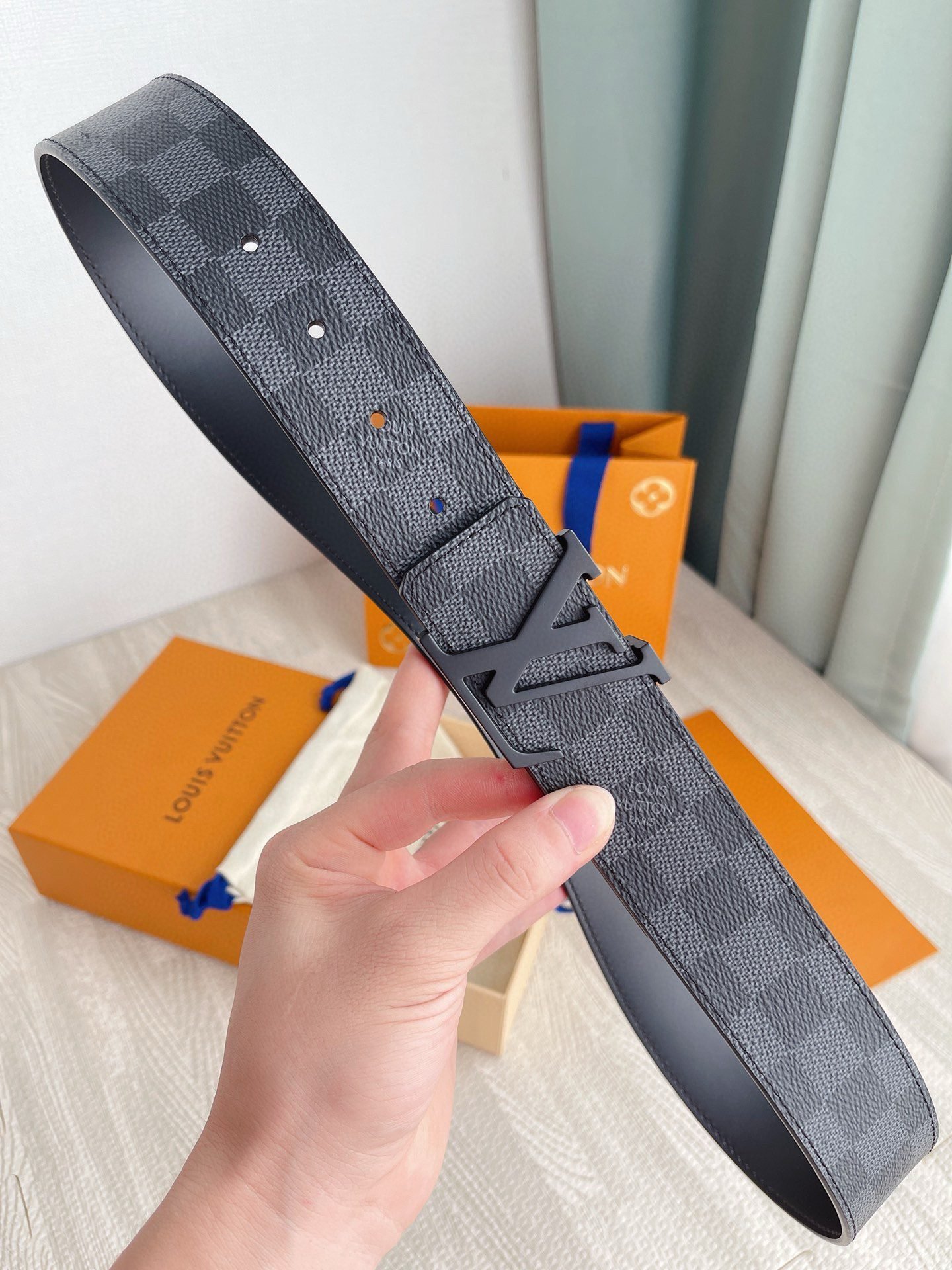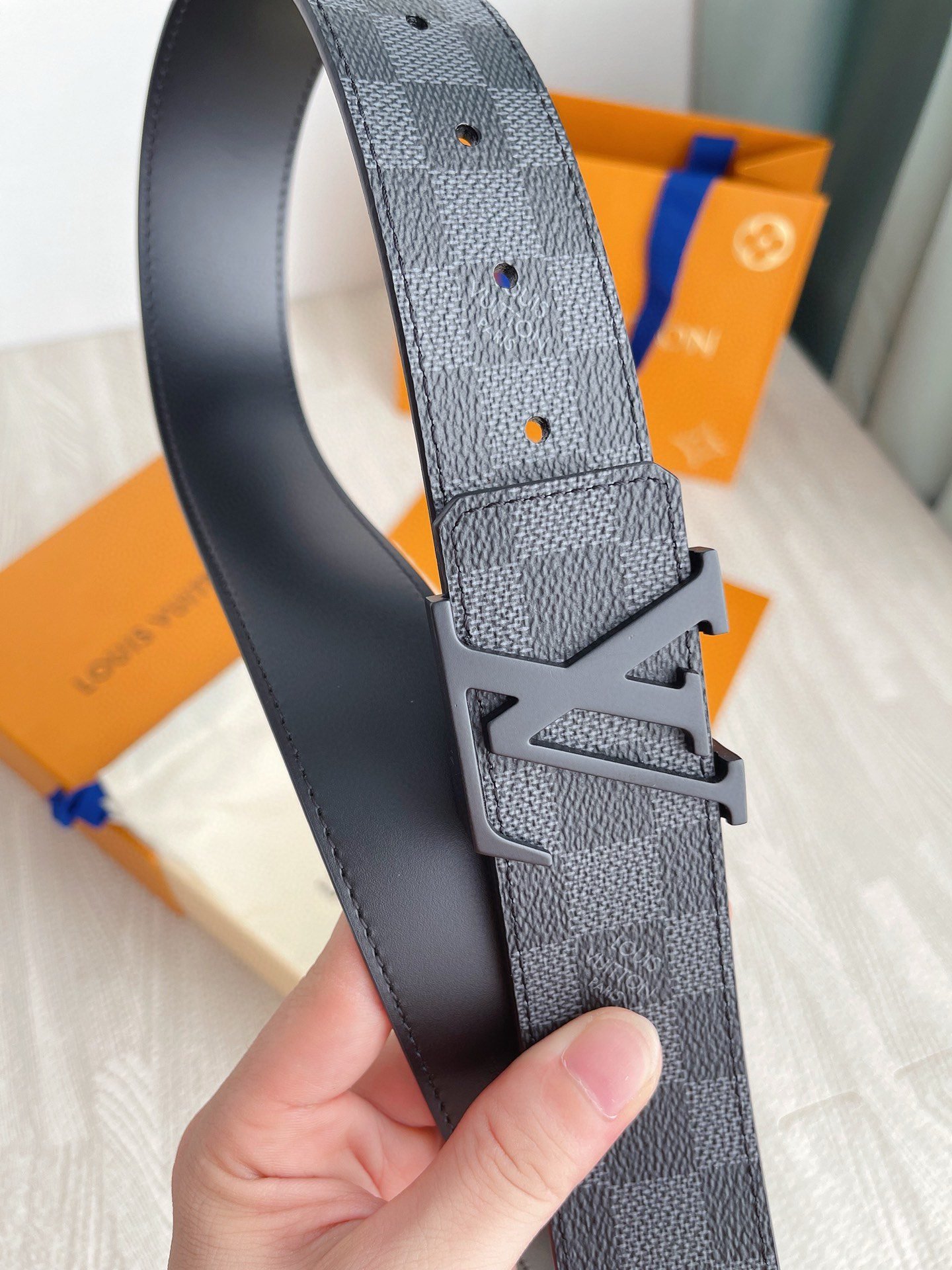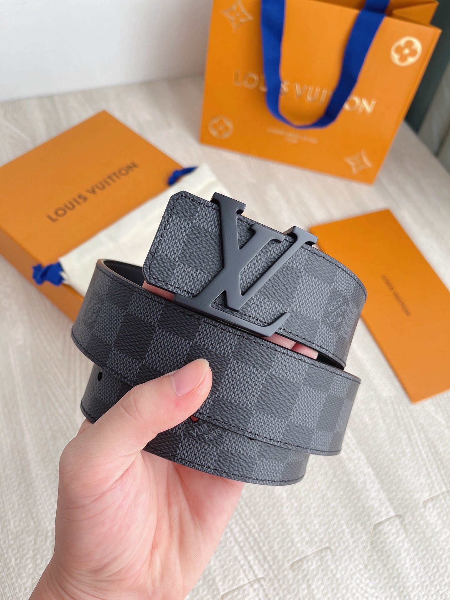 This Louis Vuitton premium matte black buckle black checkered belt has become a must-have item for fashionable men with its unique design and excellent craftsmanship. The belt is made of high-quality first-layer cowhide, which has been carefully polished and polished. It feels soft and delicate, and has good wear resistance and durability.