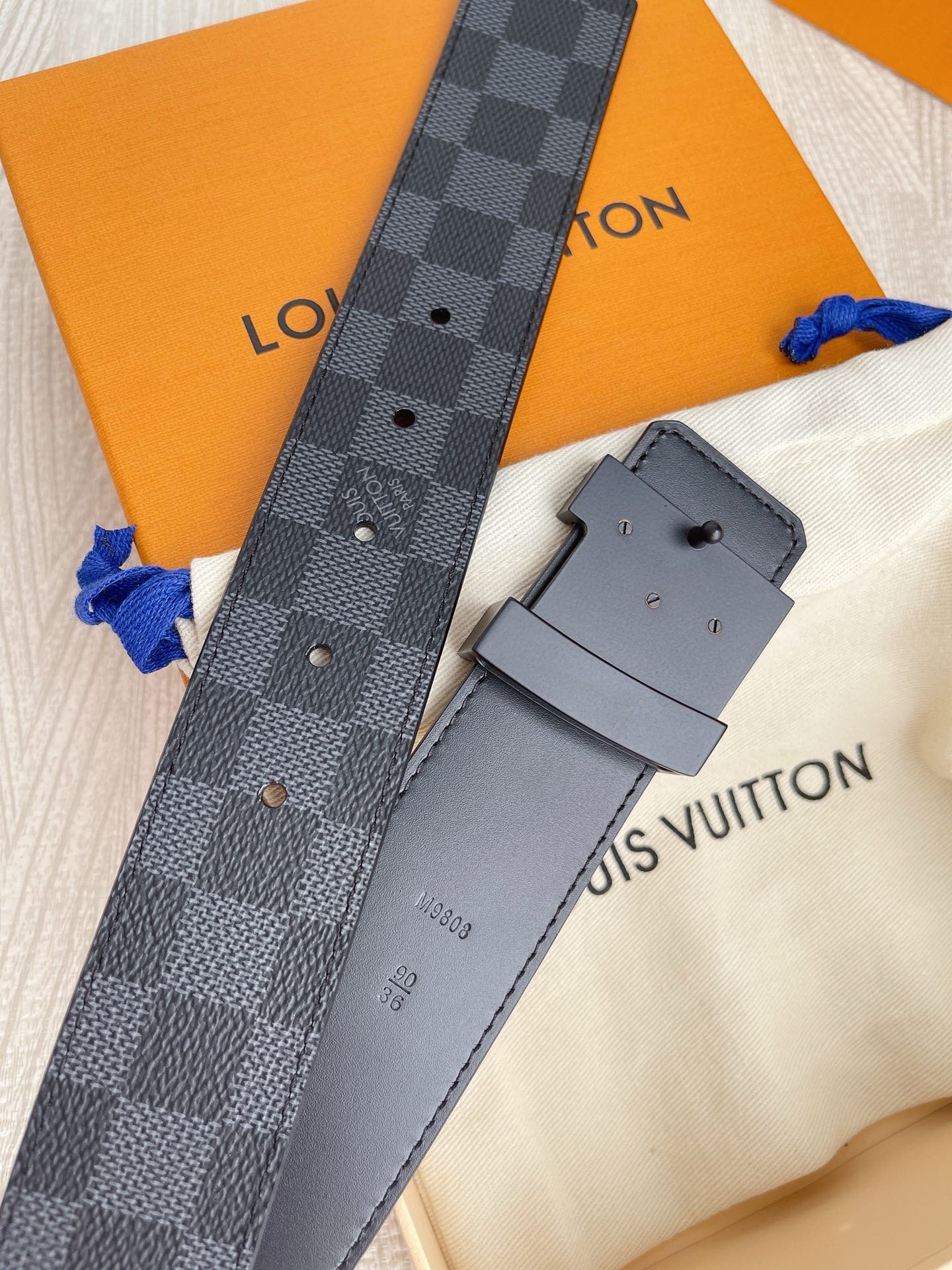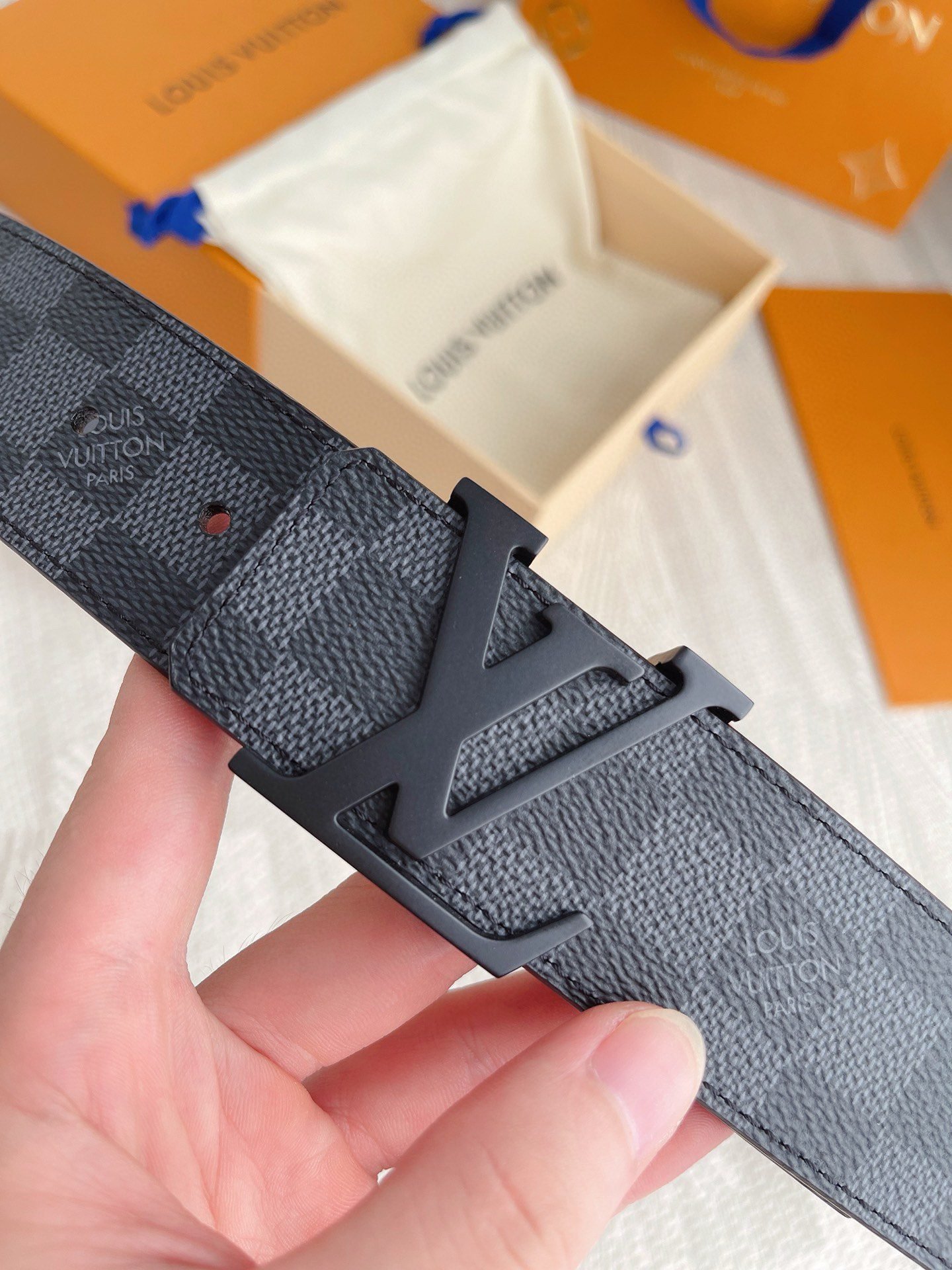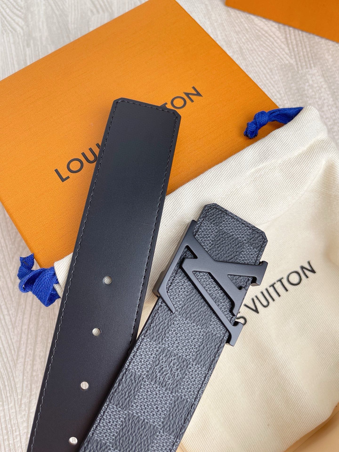 This Louis Vuitton premium matte black buckle black checkered belt has become a must-have item for fashionable men with its unique design and excellent craftsmanship. The belt is made of high-quality first-layer cowhide, which has been carefully polished and polished. It feels soft and delicate, and has good wear resistance and durability.