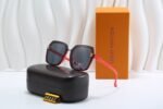 Home SUNGLASSES Sunglasses-LV Louis Vuitton red edged and dark gray large framed hexagonal and patterned border sunglasses