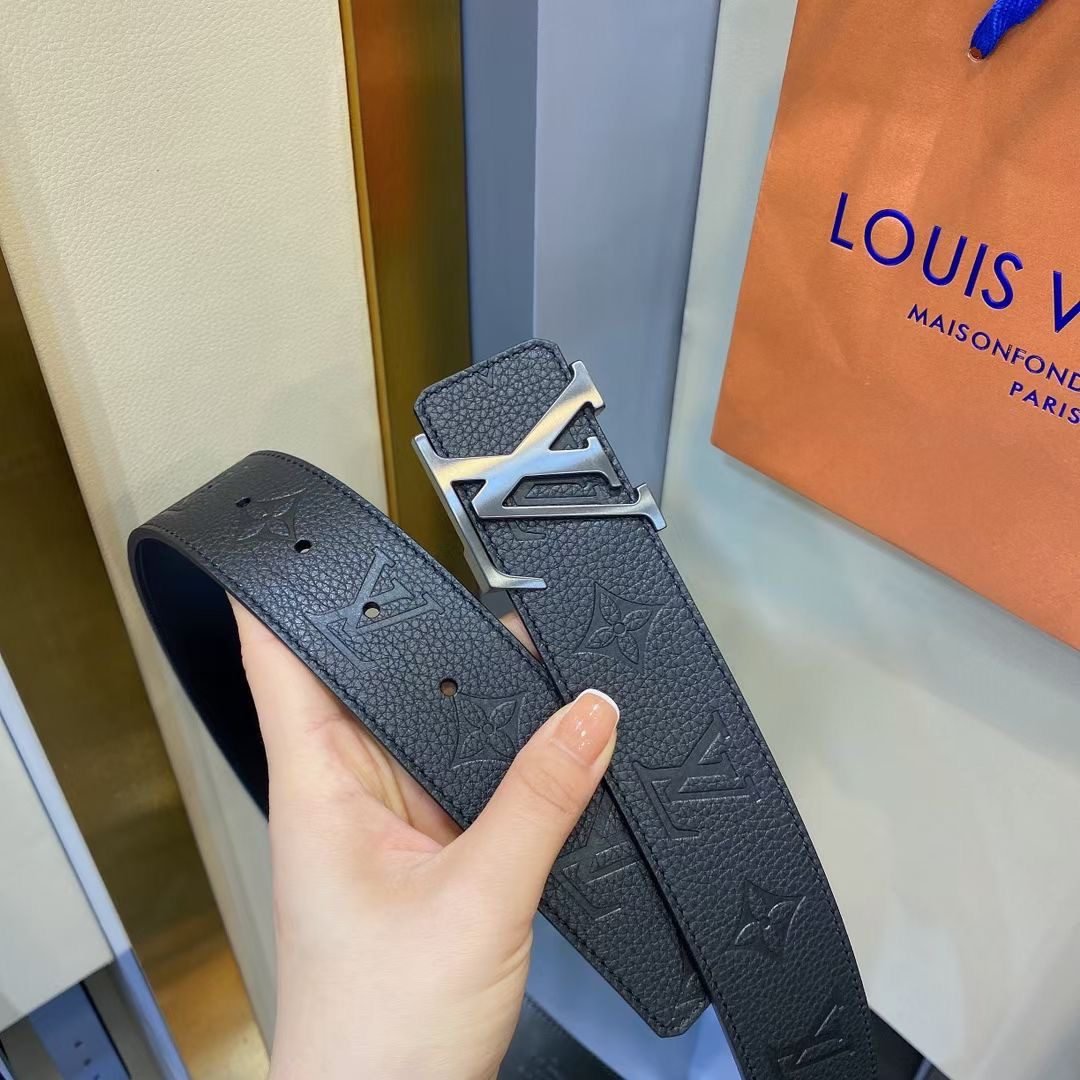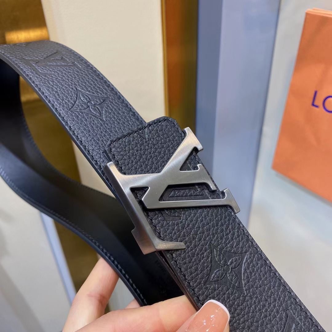 This Louis Vuitton silver V-buckle black textured belt highlights the brand’s classic charm with its simple yet luxurious design. The belt is made of top-grade black leather, which is soft and elastic to the touch, and has a natural luster on the surface, showing an unparalleled sense of quality. The belt buckle head adopts a delicate silver V-shaped design, which is cleverly integrated with the brand’s iconic “LV” lettering, showing a unique sense of fashion.