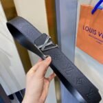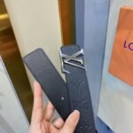 This Louis Vuitton silver V-buckle black textured belt highlights the brand’s classic charm with its simple yet luxurious design. The belt is made of top-grade black leather, which is soft and elastic to the touch, and has a natural luster on the surface, showing an unparalleled sense of quality. The belt buckle head adopts a delicate silver V-shaped design, which is cleverly integrated with the brand’s iconic “LV” lettering, showing a unique sense of fashion.