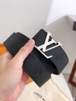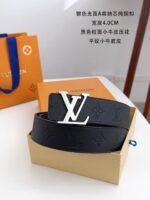 This Louis Vuitton silver buckle black textured belt shows the brand’s unique charm with its simple yet luxurious design. Made of high-quality leather material, soft and comfortable to the touch, and has excellent durability. The silver “LV” logo on the belt highlights the noble temperament of the brand and allows the wearer to easily become the center of attention.