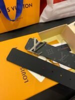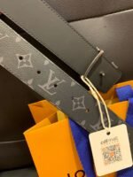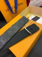 Louis Vuitton’s silver buckled black textured belt demonstrates the brand’s excellent quality with its impeccable craftsmanship and top-quality materials. Selected top-grade black leather, the surface shows fine texture and elegant luster, soft to the touch and elastic. The unique silver “LV” logo is embellished on it, symbolizing the brand’s immortal legend and eternal charm.