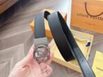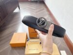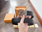 Home Belt LV belt Louis Vuitton silver round buckle black belt, elegant and low-key luxury