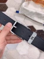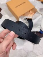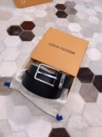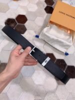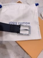 Louis Vuitton’s black belt with silver square buckle highlights the brand’s extraordinary charm with its timeless tone and exquisite craftsmanship. The belt is made of high-quality leather, which feels delicate and smooth, and has excellent durability and anti-wear properties. The belt buckle is inlaid with the brand’s iconic “LV” letters, using silver polishing technology to shine, highlighting low-key luxury.