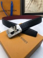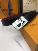 This black belt with a silver square buckle combines classic black and noble silver, intertwining unparalleled fashion and luxury. Selected top-grade leather material, treated with exquisite craftsmanship, soft and elastic to the touch, durable. The belt buckle head is uniquely designed and matched with the classic LV logo, highlighting the wearer’s distinguished status and extraordinary taste.