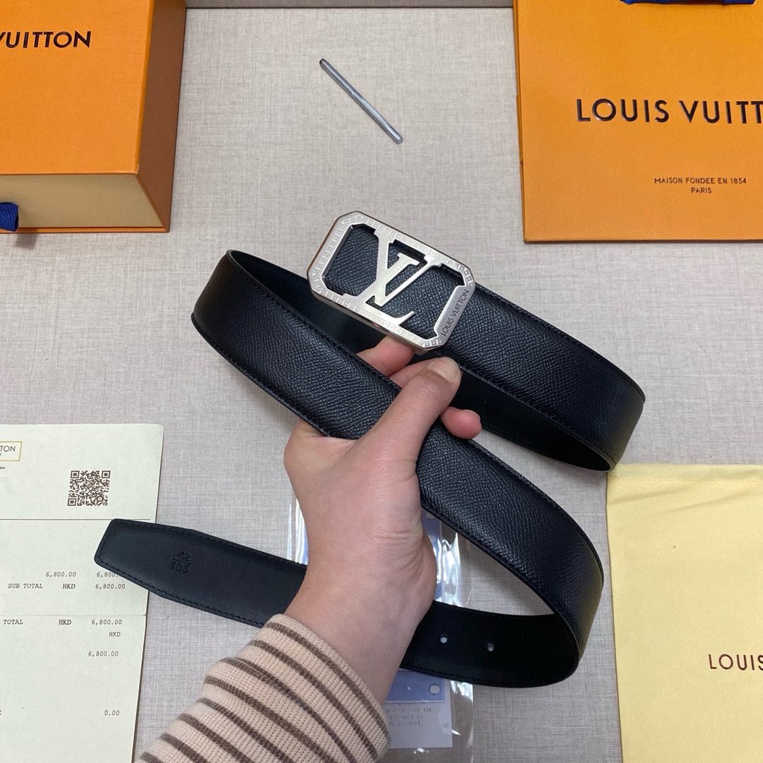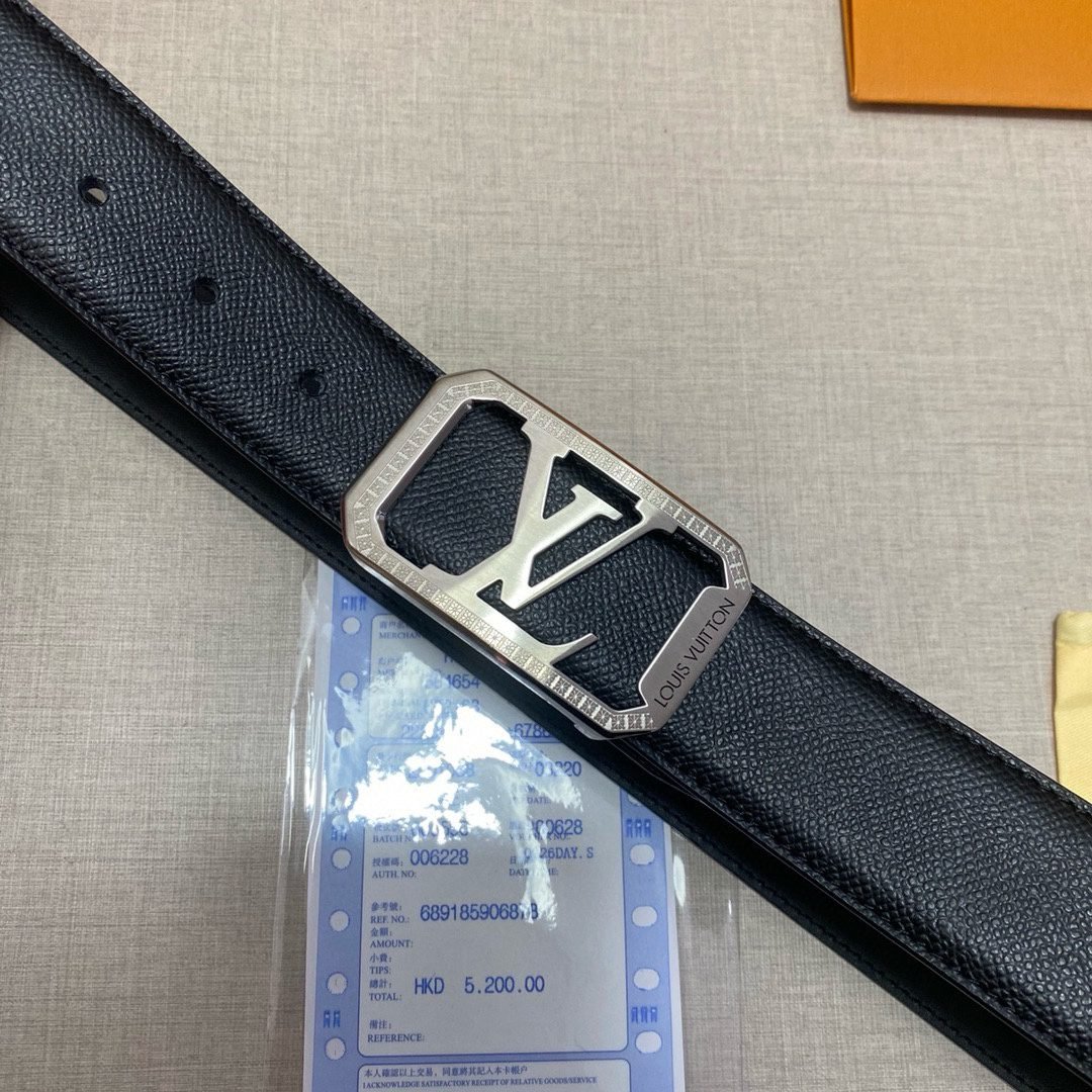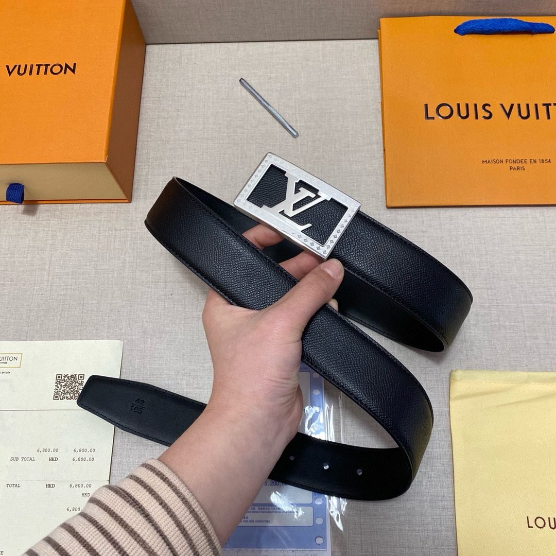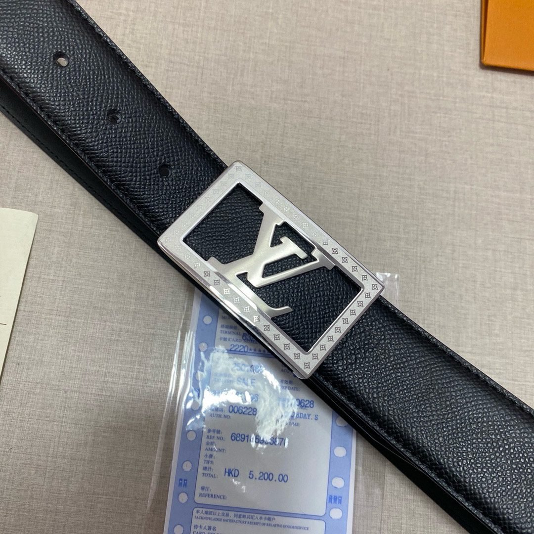 Home Belt LV belt Louis Vuitton silver square buckle black belt, simple and elegant, low-key luxury