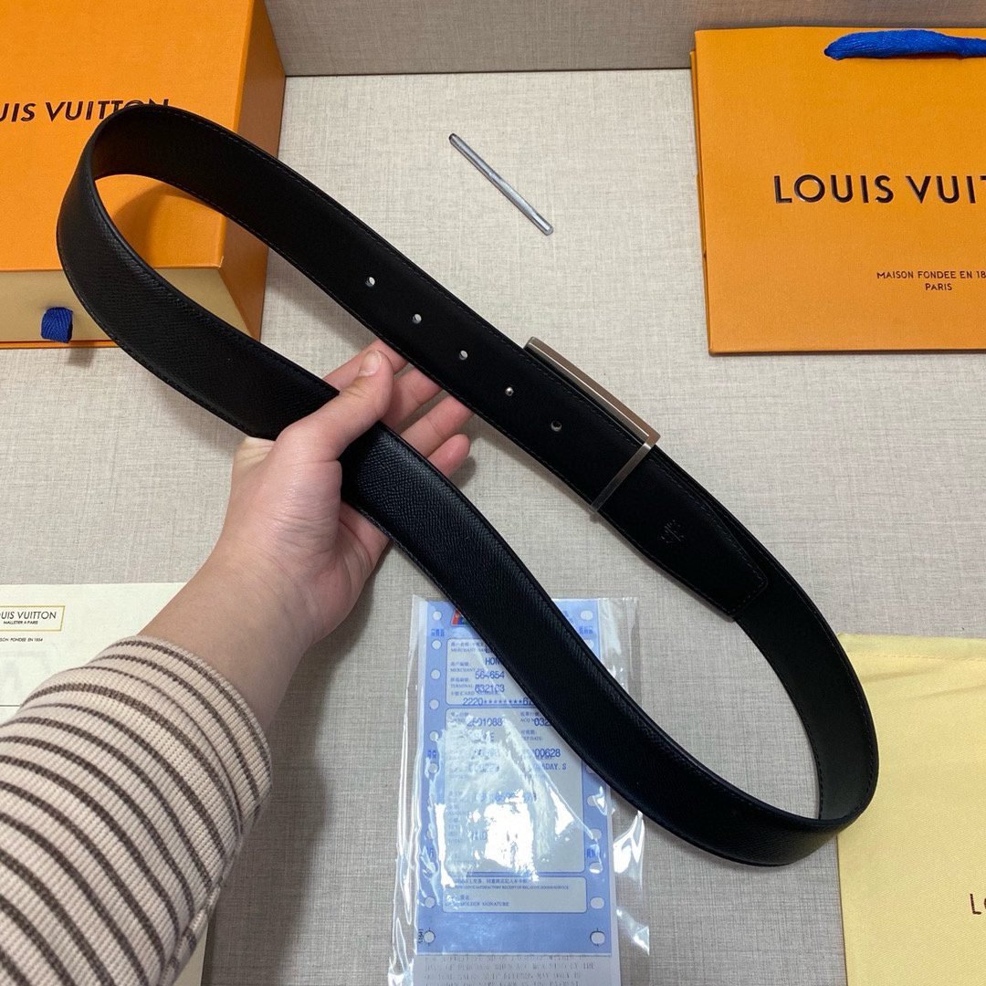 Louis Vuitton silver square buckle black belt, simple and elegant, low-key luxury