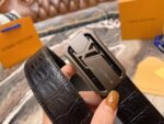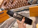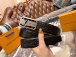 Louis Vuitton’s silver square buckle black house crocodile pattern belt is made of top-quality leather and processed with exquisite craftsmanship to present a unique texture and luster. The surface of the belt is delicate and smooth, soft and comfortable to the touch, showing an unparalleled sense of luxury. The metal buckle is made with exquisite craftsmanship and is engraved with the brand’s iconic “LV” to highlight your distinguished status.