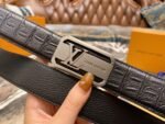 Home Belt LV belt Louis Vuitton silver square buckle black crocodile pattern belt, simple and elegant, low-key luxury